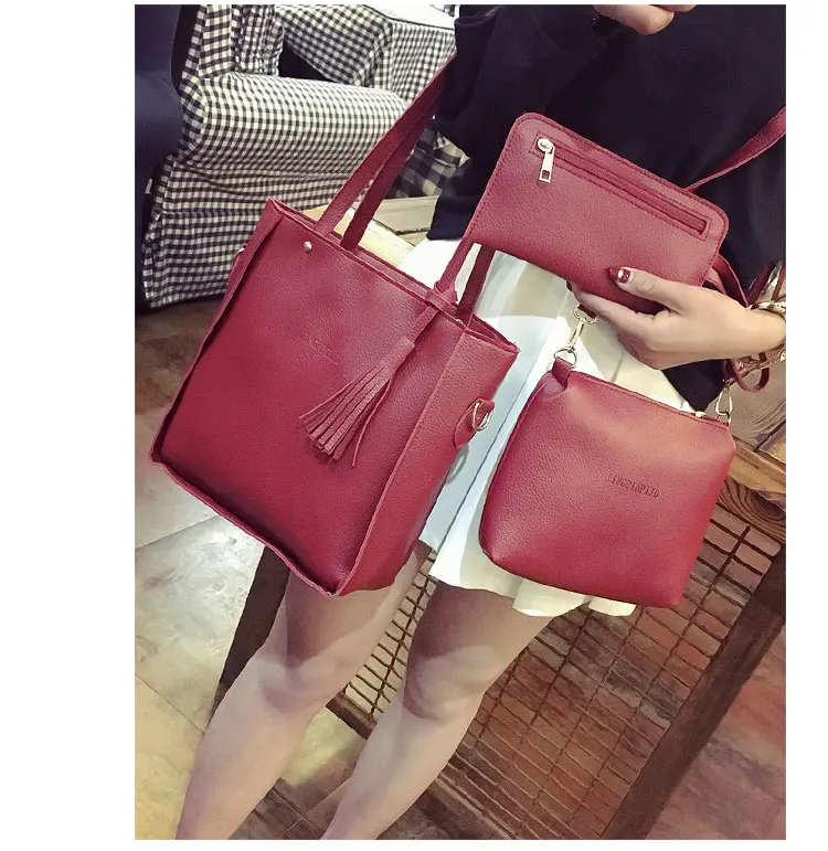 3 шт./компл. женские Сумки из искусственной кожи модные сумки с кисточками кожаная