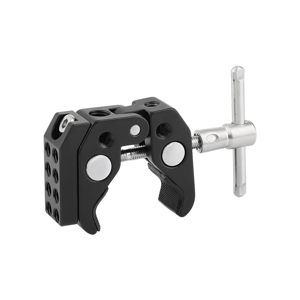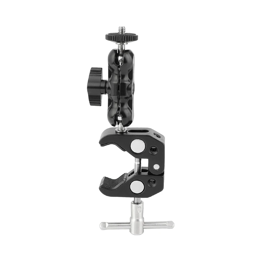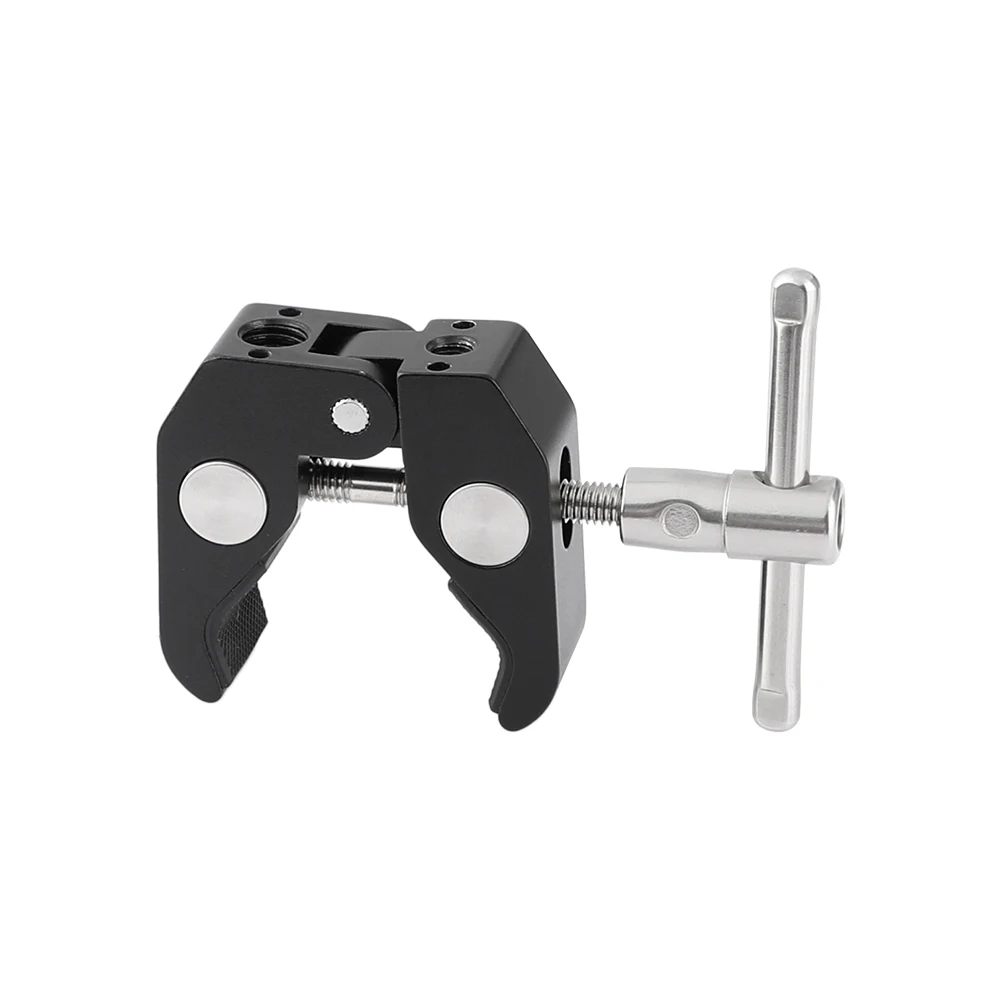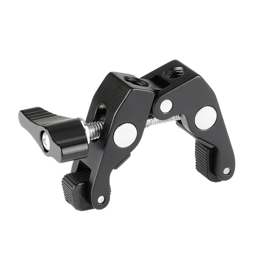 Основные характеристики продукта • Резьбовое отверстие 1/4 "-20 • Резьбовое отверстие 3/8 "-16 • Съемный винт 1/4 "-20 до 1/4"-20 • Большая рифленая кромка 1/4 "-20 Locknut (красный) Описание товара • Пять резьбовых отверстий 1/4 "-20 и 3/8"-16 • Помогает инженерам по освещению или фотографам легче фиксировать свои аксессуары; С возможностью регулировки • большая рукоятка размером до 5,4 см. • Иметь возможность исправить на любой трубки приходя с размером от 1,5-5,4 см; • Можно закрепить на любом корпусе, например: водопроводные трубы, поручни, двери, полки, столы, ветки, провода и т. Д. Вес нетто: 143 г Посылка включает: 1 Супер Зажим