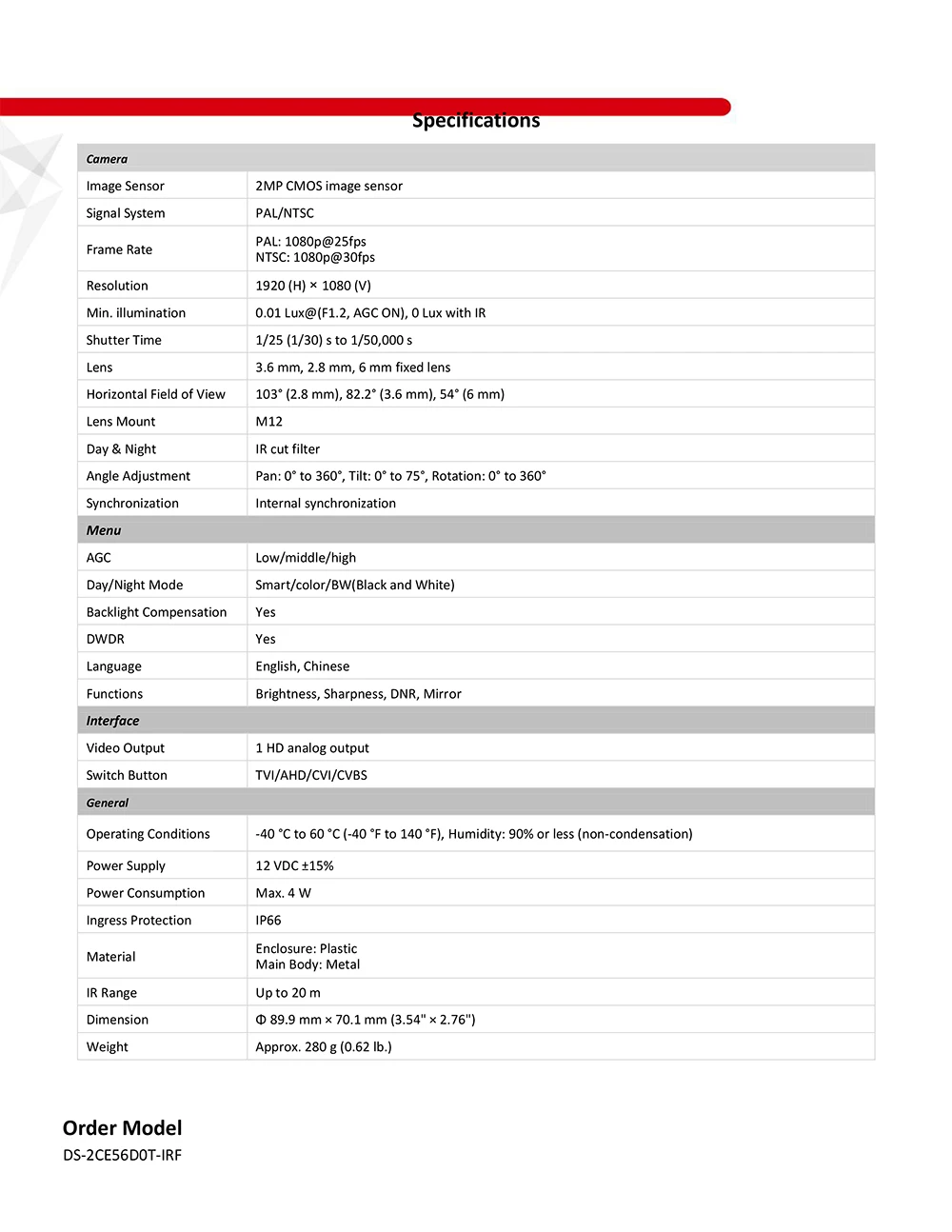 Hikvision английская версия 4 в 1 переключаемая DS-2CE56D0T-IRF HD1080P CCTV камера безопасности IR 20m 2MP камера ночного видения
