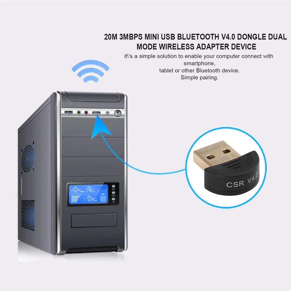 Особенности: Этот адаптер mini USB Bluetooth 4,0 с высокой скоростью, Простое сопряжение, хорошие функции против помех, Это простое решение для подключения компьютера к смартфону, планшету или другому bluetooth-устройству. Простое сопряжение. Хорошая защита от помех. Bluetooth низкая энергия радио USB ключ. Двойной режим Bluetooth передачи. Низкая мощность выбирается от 1,2 до 3,6 VI/O. Описание: Поддержка голосовых данных Bluetooth. Поддержка нескольких языков. Обратная совместимость с Bluetooth v1.2/2,0/2,1/3,0. Технические характеристики: Версия: CSR4.0 Операционная система: для Windows 98,98 se, Me, 2000, XP, Vista, для Windows7 Интерфейс: Соответствие USB Скорость: 3 Мбит/с Диапазон приема/отправки: 20 м Сертификаты: FCC, CE Цвет: черный Размер изделия: около 2,2*1,9*0,7 см Содержание упаковки: 1*4,0 bluetooth-адаптер