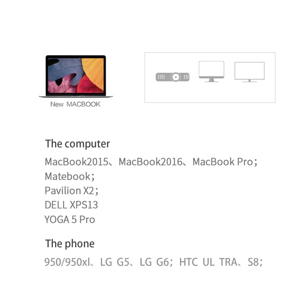 Особенности: Подключи и работай, прост в эксплуатации и использовании. Высокая скорость передачи видео. Небольшой размер, легко носить с собой и использовать. АБС-пластик, полированная поверхность. Сильная совместимость, подходит для macbook, для HUAWEI и т. Д. Описание: Синхронизация аудио и видео, высокоскоростная передача, двойной экран дисплея. Технические характеристики: Материал: пластик Пол: мужчин и женщин Общая длина: 16 см Размер корпуса: 4,5*1,5*4,5 см Цвет: белый Упаковка включает в себя: 1 x Переключатель типа с-HDMI Примечания: Из-за разницы между различными мониторами изображение может не отражать фактический цвет изделия. Мы гарантируем, что модель реального изделия не отличается от представленной на фото.