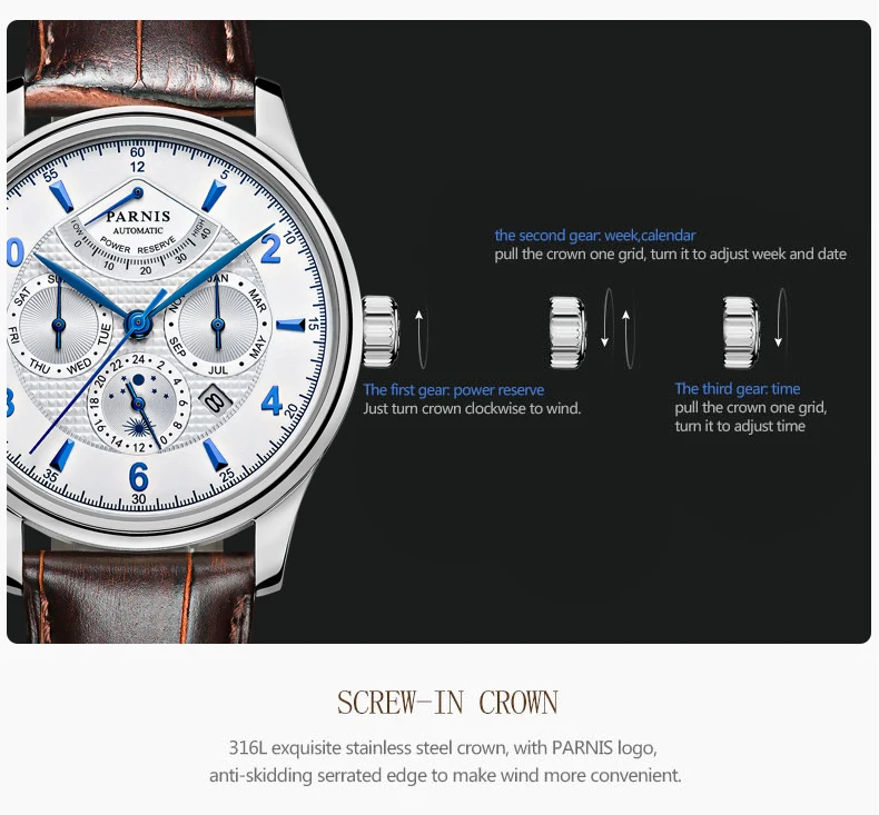 Advantage1: 100% оригинальный бренд parnis, низкая заводская цена, поддержка Прямая поставка/оптовая продажа Advantage2: непосредственно отправляется с завода, может проверить качество перед отправкой Время отправки: обычно отправляется в течение 12 часов, за исключением выходных и праздничных дней Движение: Япония 9100/9120 Бокс: оригинальная подарочная коробка парниса/коробка для часов