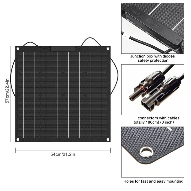 Наиболее эффективная Гибкая солнечная панель 50 Вт ETFE ламинированная гибкая солнечная панель моносолнечная батарея 12 в солнечное зарядное устройство сделано в Китае