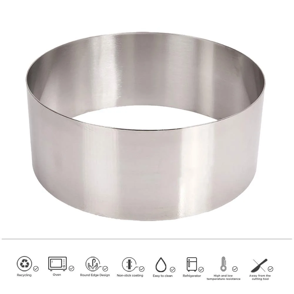 Презентация про-стиля еды и десерта: Идеально подходит для создания круглых закусок, формованных салатов, тортов, Мусса и десертов. Отлично подходит для выпечки, слойки и формования жевательного торта или фруктового пирога. Легко для чистки, печи и посудомоечной машины. Можно также использовать кольца для тортов.