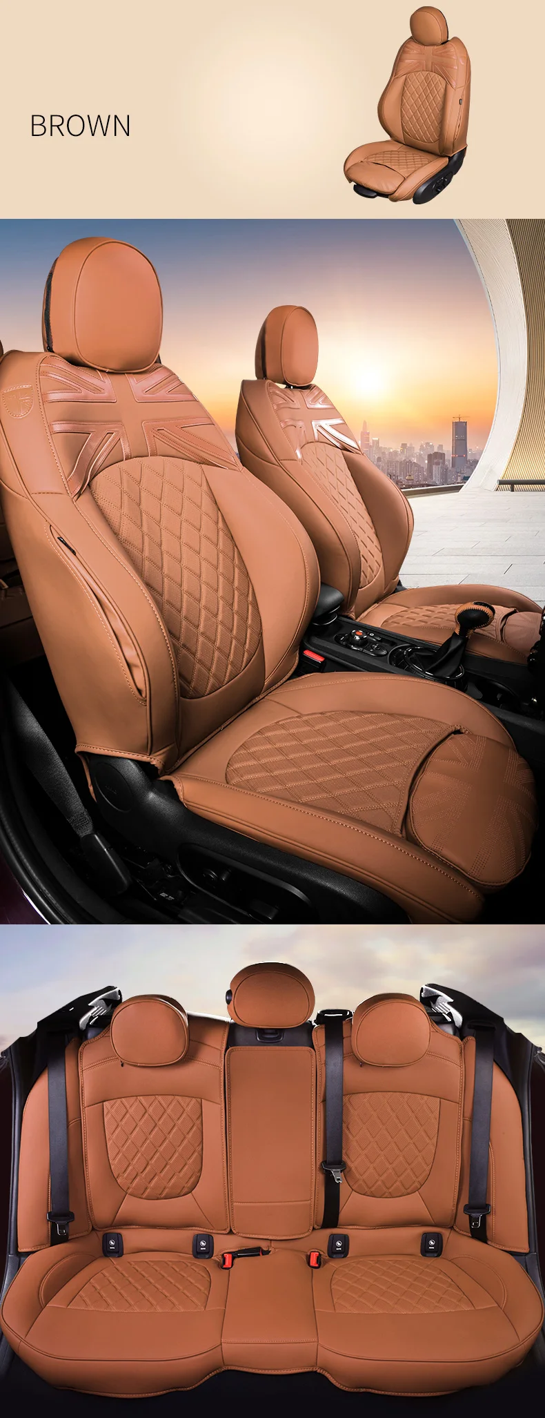 Название: чехол для сиденья Состояние: 100% новый бренд Бренд: Royal Craftsman Материал: Экологически чистая кожа ПВХ Цвет: как на картинке Фиттинг: Mini Cooper R55 R56 R57 R60 Вес: 7 кг Посылка включает в себя: набор (4 или 5 шт.) Установка: легко