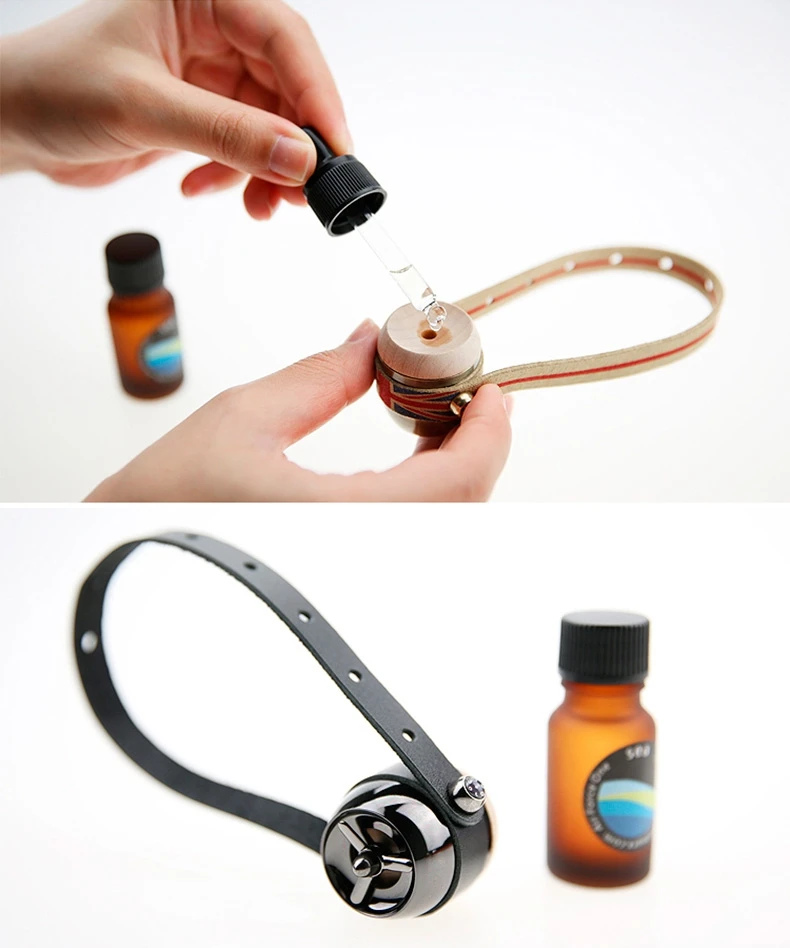 1. Поместите эфирное масло в пробку или вокруг нее 2. Затяните винты для регулировки длины ремня 3. Висит на задней части зеркала заднего вида 4. Или висит на дверной ручке