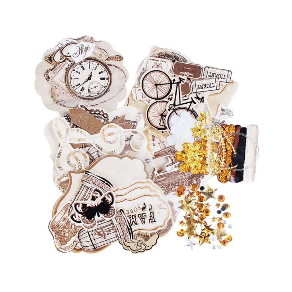2. Декоративные элементы: декоративные бумажные элементы, ленты, пайетки, стразы, полубусины.