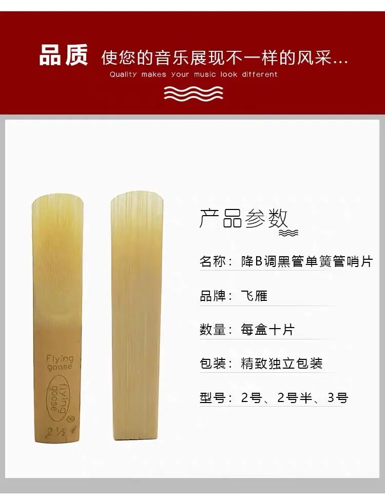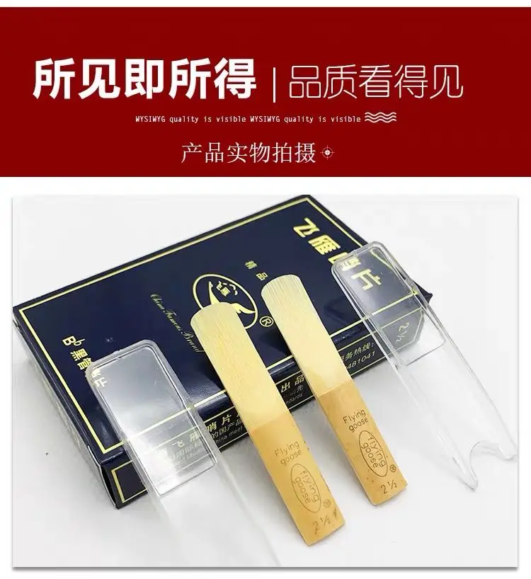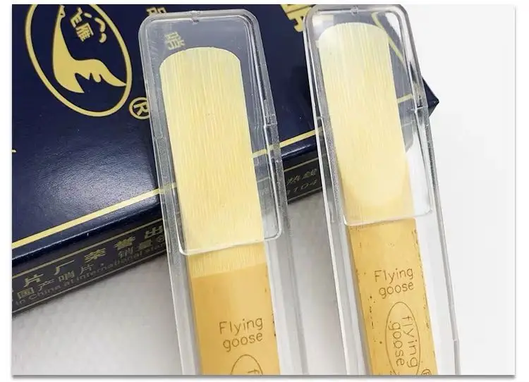 Бренд Shanghai FlyingGoose был основан в 1985 году. Эти трости немного тонкие, чем вандоран и более яркий и широкий звук, чем Вандорен. Этот продукт легче контролировать и подходит для практики и производительности. Применяется для классического (традиционного)/популярного стиля. (Этот синий продукт выбирает высококачественное сырье. У нас есть строгий выбор сырья на протяжении более двух лет роста. Пластиковые коробки тростники являются промежуточным сырьем.) Синяя коробка reeds прочна, которая имеет лучший тон и более длительный срок службы. Некоторые другие трости печати xinzhong и JMreed на спине оба используют только годовое сырье. Они имеют почти тростники, которые растут только в течение 1 года, потому что они урожай в дикой природе. Сырьевые материалы, которые растут в течение 1 года, не являются зрелыми и неквалифицированными. Две коробки Пластиковые зажимы для Тростников одинаковые. Разница только в том, что подано и не подано. И одна печать синьчжун, другая печать JMreed. Сущность не отличается. Их тростники являются продуктом 'three no''. В коробке нет подробной информации. Наша цена на тростниковый продукт дешевая и качество намного лучше. Приятно познакомиться! Мой друг!(● ''d' ●)