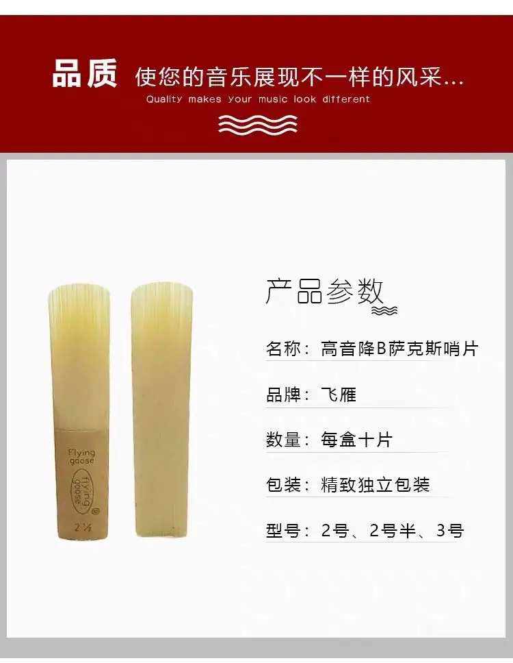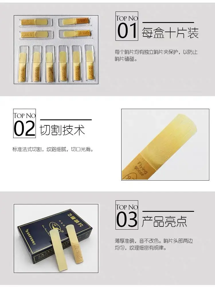 Мы являемся первым заводом в Китае, который производит все виды Sax Reeds. Мы также являемся первым в Китае, который изобрел независимый упаковочный зажим reed. Мы также можем настроить ваш бренд тростника для вас.(● ''d' ●)