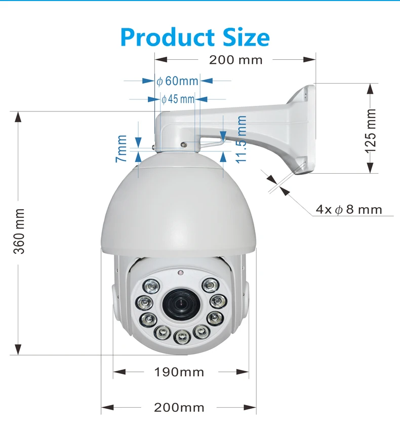 Инфракрасными датчиками: • Минимальная освещенность 0Lux • Высокоэффективный инфракрасный массив, низкое энергопотребление, расстояние облучения до 150 м • Инфракрасная лампа и алгоритм сопоставления расстояния с увеличением • Встроенная система термической обработки и запотевания • Конструкция с постоянным током, инфракрасная лампа жизни достигает 30000 часов Системы диагностические функции: • Высокоэффективный датчик, изображение четкое, максимальное разрешение может достигать 1920*1080,2592X1920 • Точное электродвигательного привода, чувствительный ответ, бесперебойную работу, точность отклонение составляет менее 0,1 градусов просмотра дрожания-бесплатно при любой скорости • Поддержка функции памяти состояния отключения питания, автоматическое возвращение в PTZ и состояние объектива перед выключением после включения питания • Защита от молнии, перенапряжения и перенапряжения • Наружный шар достигает уровня защиты IP66 Функция движения: 30x оптический зум Поддерживает автоматический ирис, автофокус, автоматический баланс белого, компенсацию подсветки Поддержка ультра-низкого освещения, 0.05Lux / F1.6 (цвет), 0.01Lux / F1.6 (черный и белый), 0 Люкс с ИК PTZ функция: • Непрерывное вращение на 360 ° в горизонтальном направлении, -5 ° -90 ° в вертикальном направлении, без мертвых зон наблюдения • Горизонтальная заданная скорость может достигать 180 °/С, а вертикальная заданная скорость может достигать 45 °/С. • Поддержка 256 предустановленных позиций • Поддержка 5 круизных сканирования, каждый может добавить 16 предустановленных точек • Поддерживает функцию увеличения коэффициента, скорость вращения может автоматически регулироваться в соответствии с коэффициентом масштабирования объектива • Поддержка функции часов, Предустановленная точка/сканирование узоров/Круизное сканирование/Панорамное сканирование Варианты использования Характеристики инфракрасного умного шарика высокой четкости могут быть широко использованы в местах, требующих широкого спектра мониторинга качества изображения высокой четкости, таких как: реки, леса, автомобильные дороги, железные дороги, аэропорты, порты, часовые зоны, площади, парки, живописные места, улицы, станции, крупные стадионы, кварталы и другие места.