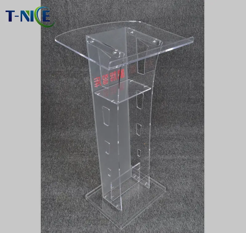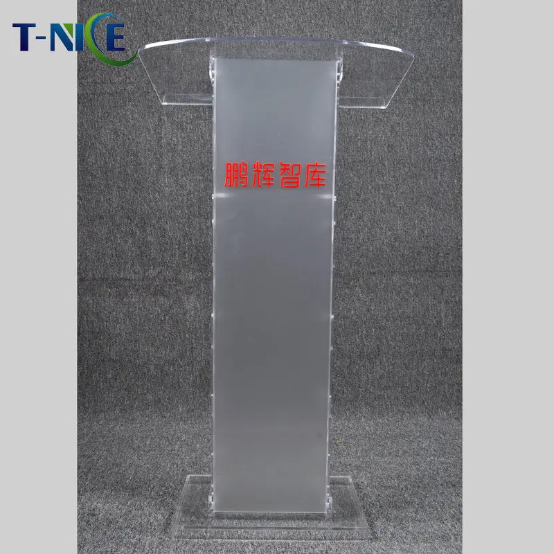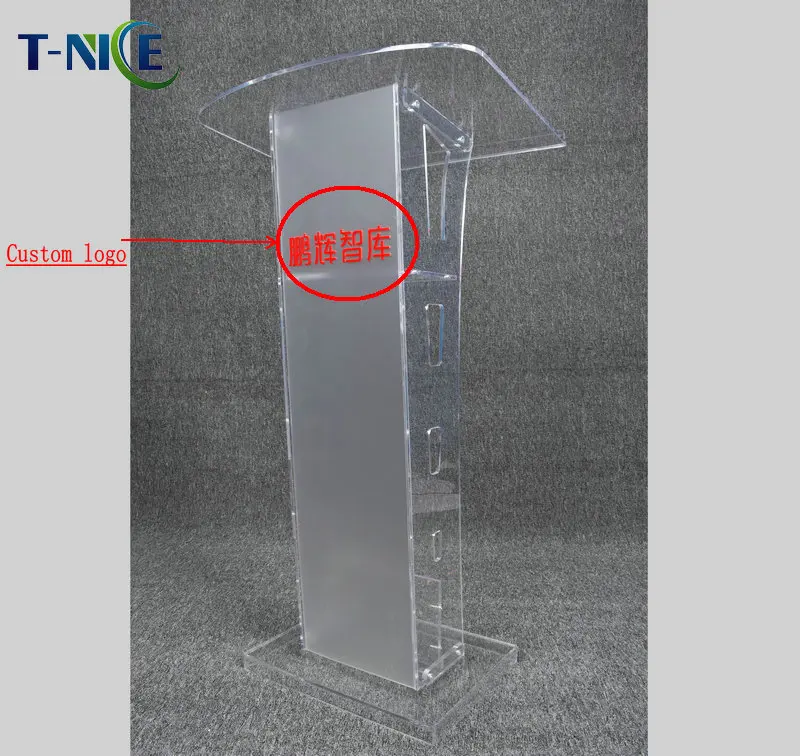 2020 Пользовательский логотип церковная кафедра дизайн светодиодный, коммерческая мебель, встроенная полка, подиум, стоячий ясный лектор, стеклянная трибуна