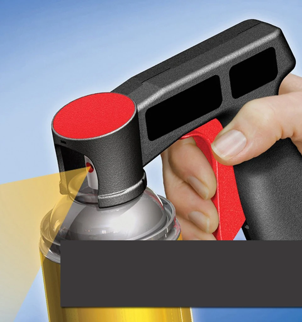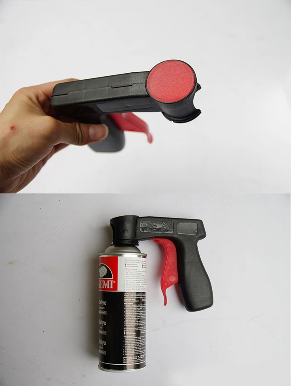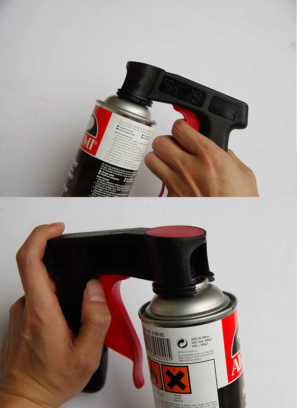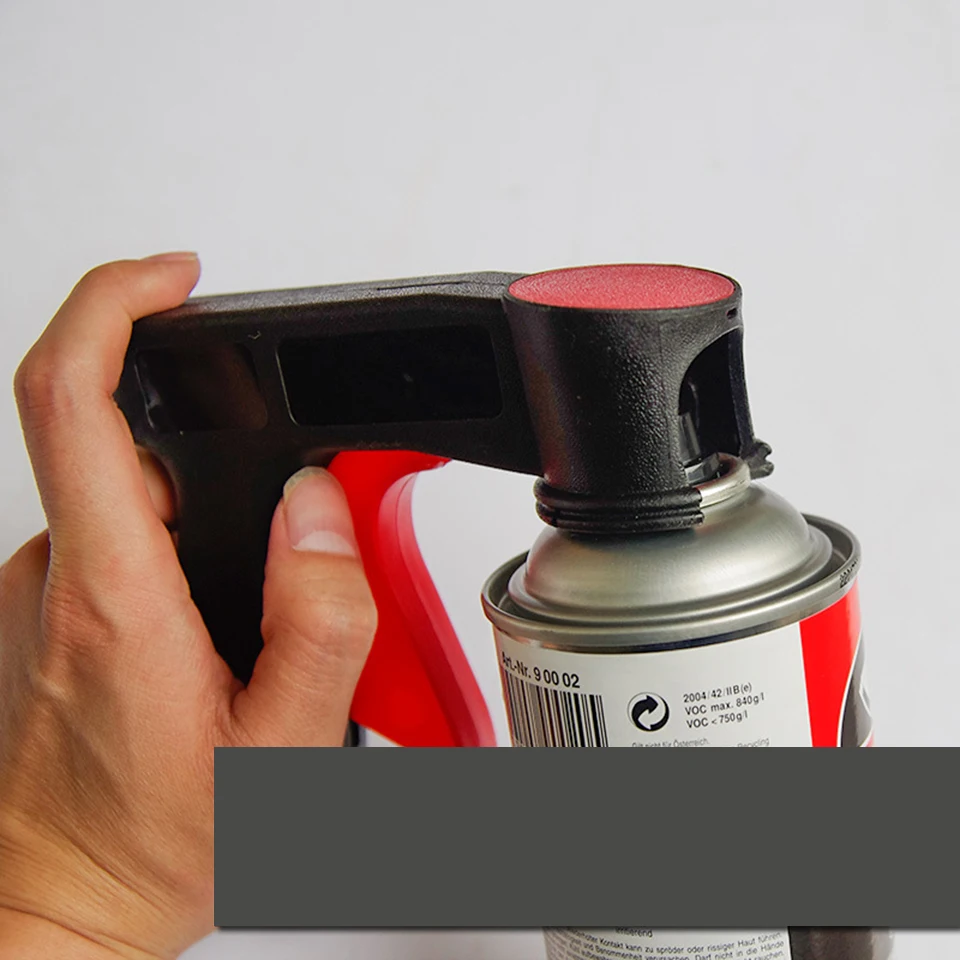 Эта удобная ручка pistolgrip подходит для всех стандартных баллонов с распылителем, что обеспечивает комфортное положение рук и запястья, аналогичное тому, что используется с распылителем.
