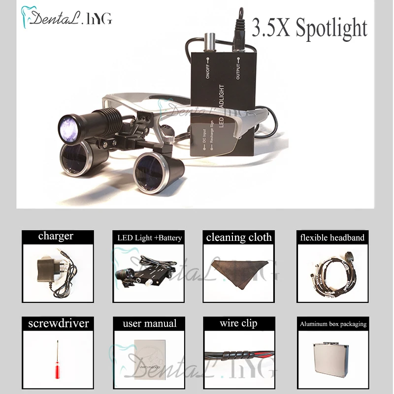 3.5X увеличение бинокулярная стоматологическая лупа хирургическая Лупа с головкой светильник светодиодный светильник медицинская операция лампа для лупы