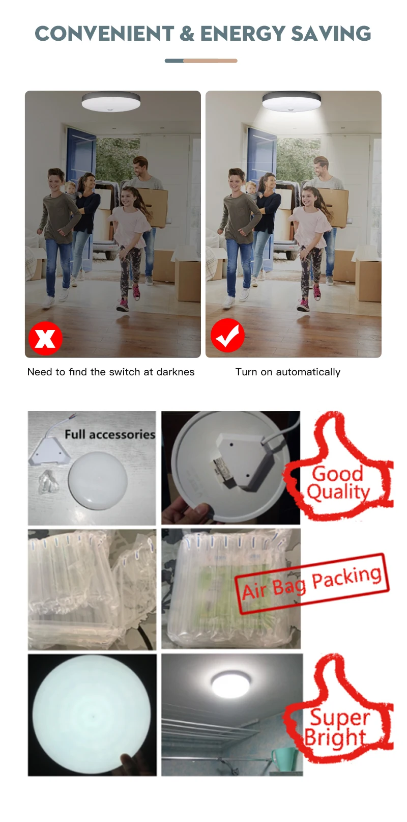 Потолочный светильник с датчиком движения 12W 18W
