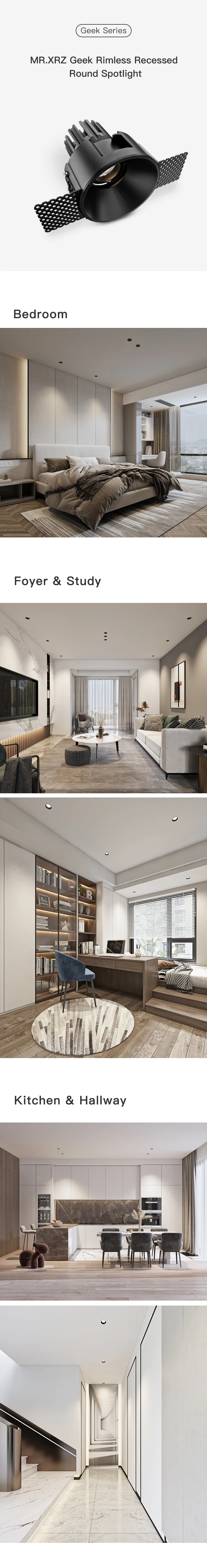 Бренд: MR.XRZ Материал: обработанный литой алюминий Цвет корпуса: белый, черный Ослепительный круг цвет: белый, черный, золотой Тип источника: светодиодный светильник CRI (индекс цветопередачи (Ra>90) близкий к ежедневному видению, который защищает глаза и более подходит для чтения) Бренд чипов: чипы Citizen Драйвер: OSRAM Мощность: 8 Вт, 10 Вт Световой поток: 70 лм/Вт Угол луча: 50 градусов (по умолчанию), 25 градусов Цветовая температура: теплый белый (3000K), натуральный белый (4000K) Гарантийный срок: 2 года Время работы: 35000 часов