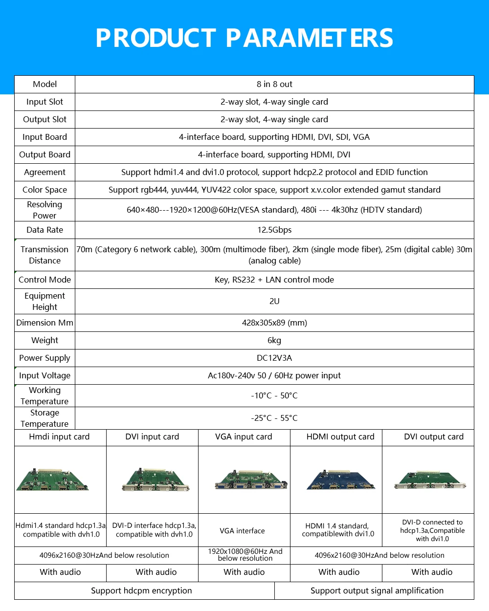 1. | Модульная конструкция, с переключением между дальним и карты 4 полосная конструкция, может поддерживать DVI / HDMI/VGA/SDI/сигнала VGA смешанный вход и выход |