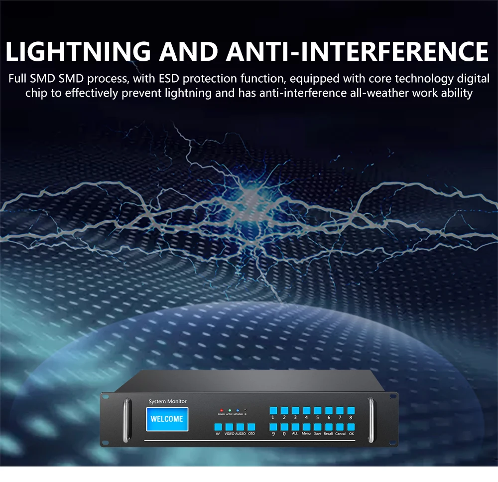 1. Модульная конструкция, устройство принимает одну карту в 4-х направлениях, дизайн, и может поддерживать смешанные вход и смешанные выход DVI/HDMI/SDI/сигналы VGA;