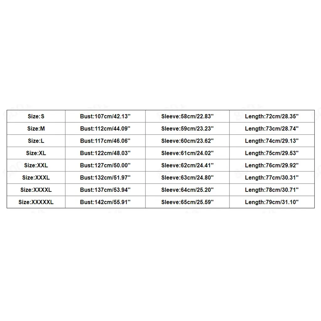 | XXXXXL | 142 см/55,91'' | 65 см/25,59'' | 79 см/31,10'' |