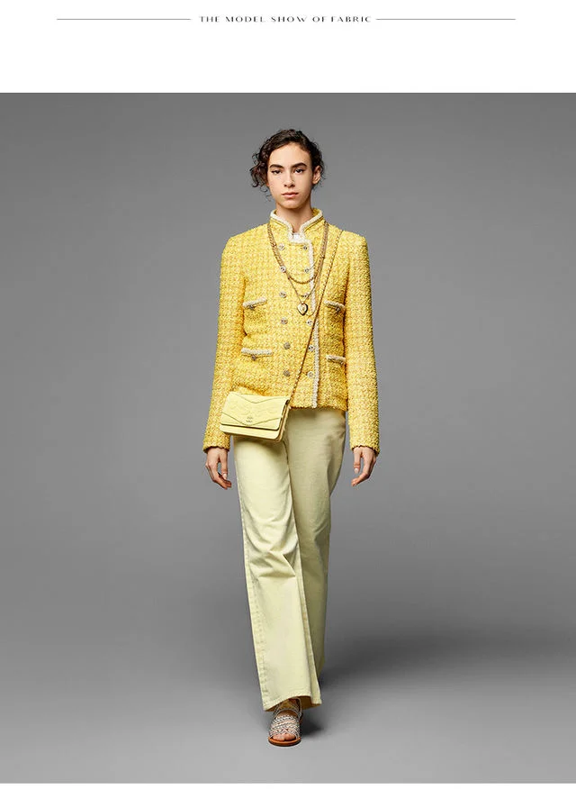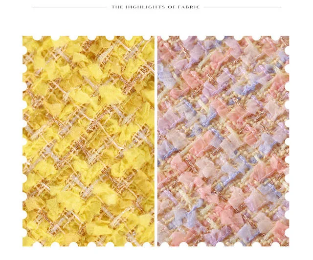 Информация о продукте Материал: смешанный Узор: геометрический узор Стиль: европейский и американский Цветовая классификация: желтый и розовый Ремесло: окрашенная пряжа Способ продажи: свободные ножницы Подходящий Предмет: одежда