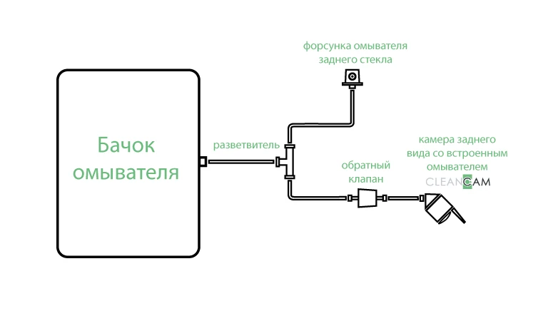 омывателя заднего стекла через тройник входящий в комплект и работает в паре