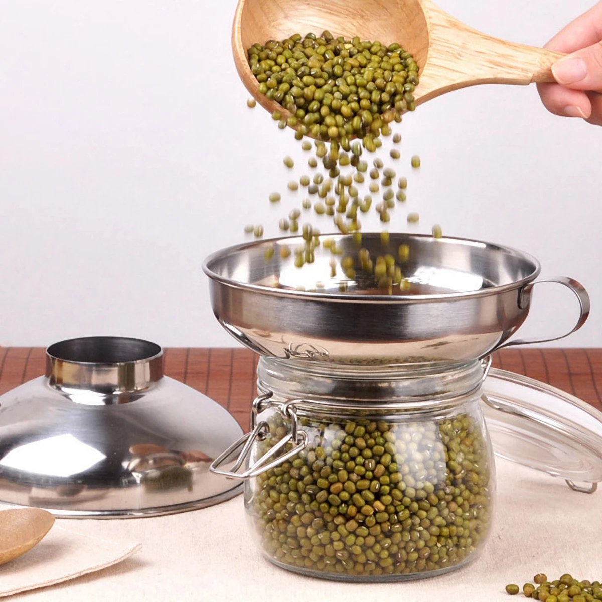 Широкий рот достаточно большой для варенья, сахара, муки и зерна, как рис