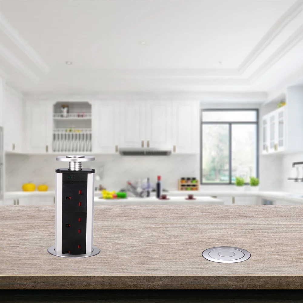 Настольная розетка может быть установлена на рабочем столе с отверстием диаметром 8 см, а также выдвижной и скрытый, его можно зафиксировать в любом положении для использования,Занимает меньше рабочего места.