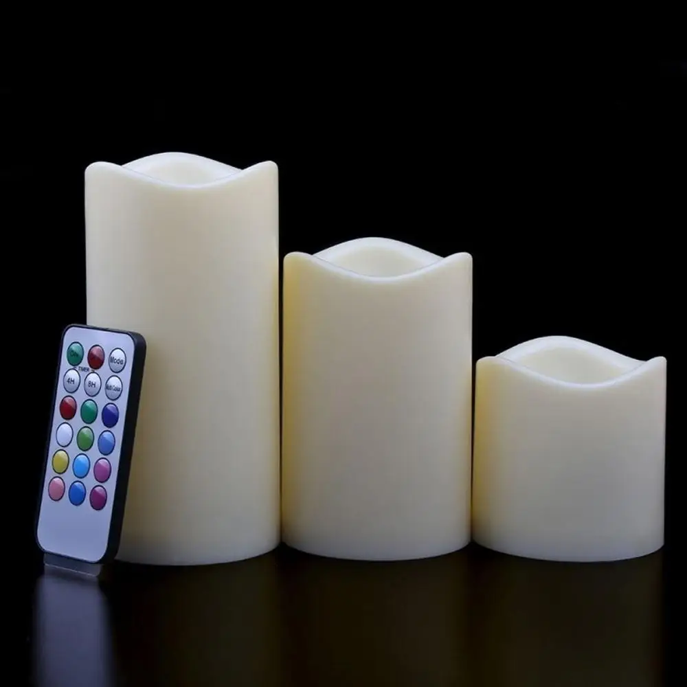 3 штуки в упаковке свечи-включает в себя 3 ", 5", 6 "и 7,5 см диаметр светодиодный свечи столба, 1 шт. 18-ключ с голосовыми функциями с дистанционным управлением. Светодиодный аккумулятор для свечей не входит в комплект, но пульт дистанционного управления включает батарею.