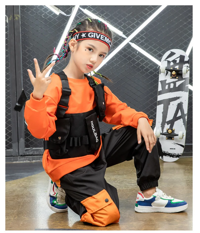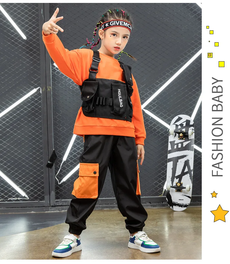 Детская одежда в стиле хип-хоп; Толстовка; Топ; Брюки-карго; Военный тактический жилет; Сумка для девочек и мальчиков; Костюмы для джазовых танцев; Одежда для улицыПожалуйста, обратите внимание, что топы, штаны и сумка продаются отдельно, если вы хотите 1 комплект, пожалуйста, купите их все!