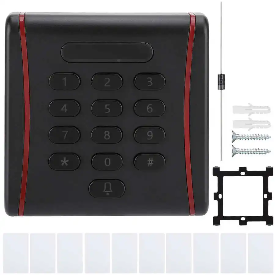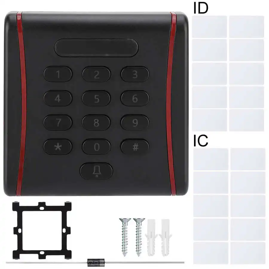 Brand NameYOUTHINKOriginMainland ChinaMeasurement unit100000015Each pack1Support Card Frequency125Khz/ID, 13.56Mhz/IC (Optional)Opening ModeCard, Password, Card + PasswordSupport Card TypeID Card, IC CardWiegand InterfaceWiegand 26 bitCapacity1000 usersPower0.15WWorking VoltageDC 9-16VWorking Current≤100mAStatic Current≤30mAWaterproofIP65Card Reading Distance3-6cmOperating Temperature-20 ~ 70℃ApplicationWidely used in family, office, home, etc.type1Access Control Systemtype2Keypad Access Controltype3Door Access Control Systemtype4RFID Card Access Control