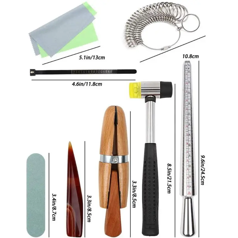 11 шт., измерительная палка с металлическим наконечником, размер кольца, драгоценные камни, молоток, деревянное кольцо, зажим, ювелирный набор