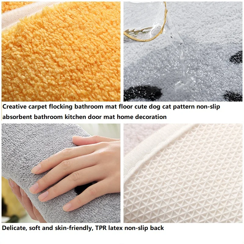 Креативный коврик, Флокированный Коврик для ванной комнаты, милый коврик с изображением собаки кошки, Нескользящий Впитывающий Коврик для ванной, кухонный коврик для двери, украшение для дома