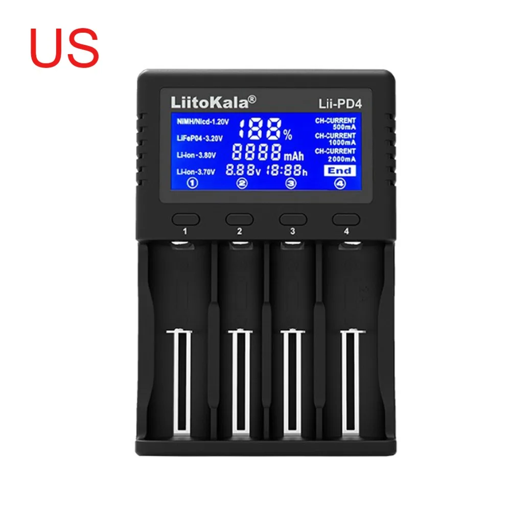 Li-ion / IMR/LiFePO4: 26650,21700,20700, 18650, 18490, 18350, 17670, 17500, 16340(RCR123), 14500, 10440