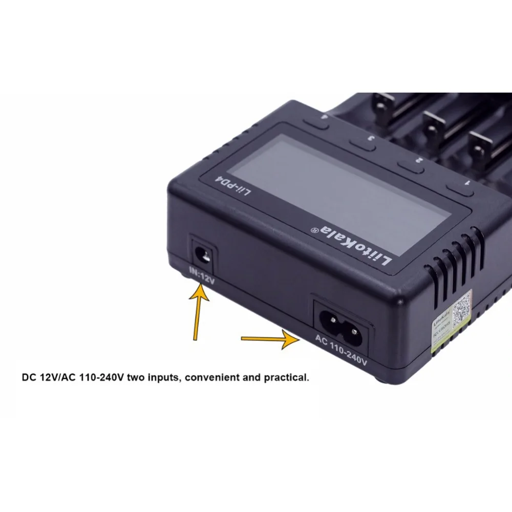 Мульти-Потребляемая мощность: кабель переменного тока 110-240V 50/60Hz (все указанные аккумуляторы входят в комплект поставки)/ 12V 1A адаптер (выборочно), четыре независимых зарядных разъем) и микро компьютерная система управления.