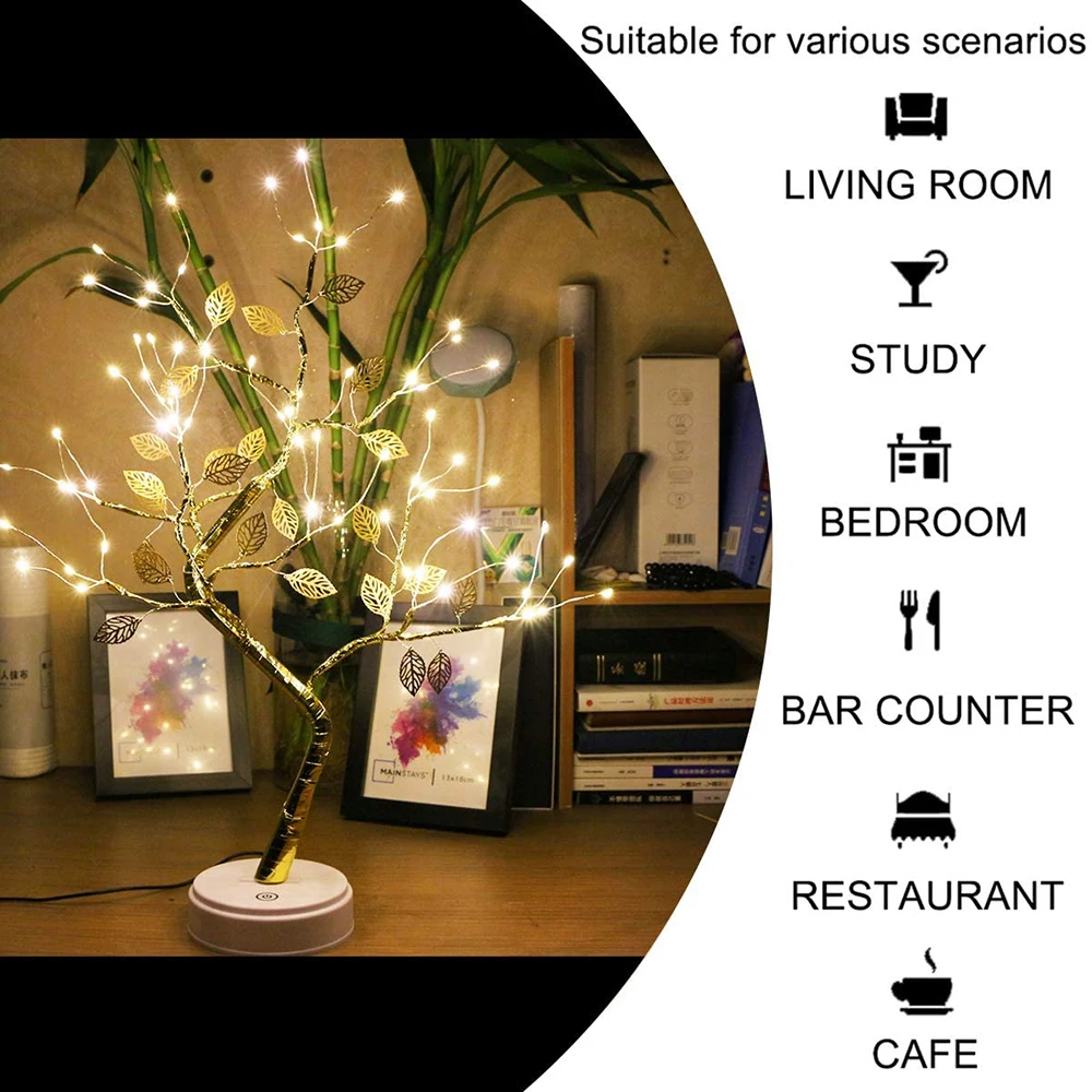 Лампа для дерева с сенсорным выключателемСветодиодный настольный светильник для дерева бонсайУкрашение для подарка дома свадьбы фестиваля праздника батареи/USB работает