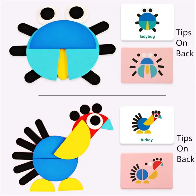 ★Поощряйте воображение и творчество: различные деревянные блоки и красочные геометрические узоры животных. Следуйте картам, чтобы создать разных животных из цветных деревянных форм. Эти узорные блоки являются эффективным способом поощрения ребенка к построению Фристайл форм, помогает вашему ребенку развивать свое критическое мышление, мелкую моторику, ловкость и решение проблем, готовя их основные навыки для будущей жизни.