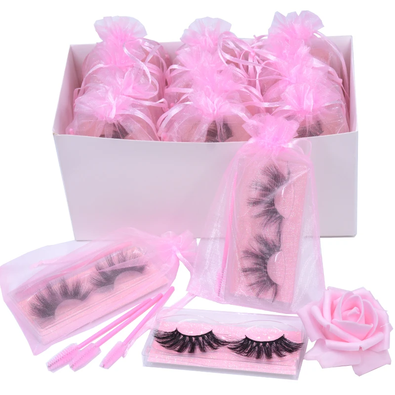 25mm 5D Faux Mink Eyelashes Dramatic Dense Big Very Long Lashes Fluffy Cruelty Free Artificial Eyeashes with Pink Organza Bag