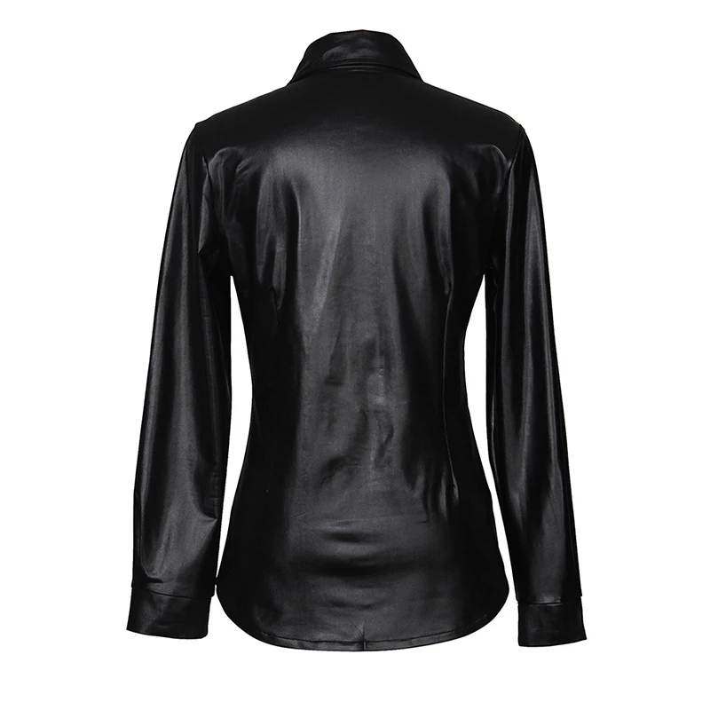 Женская сексуальная рубашка GAOKE в европейском и американском стиле для ночного клуба из искусственной кожи с длинным рукавом, хит продаж
