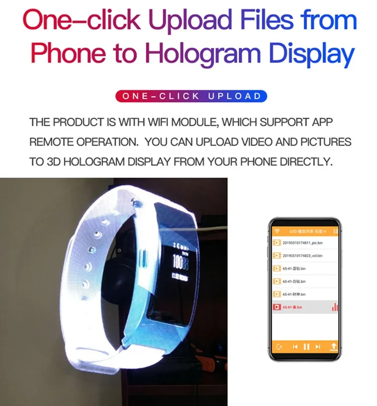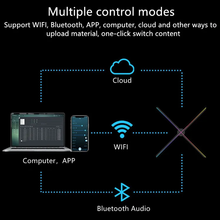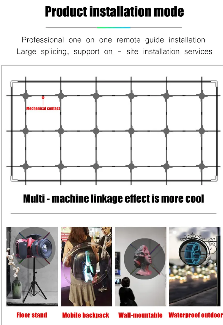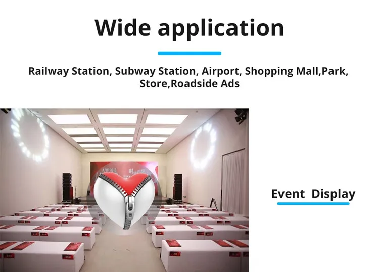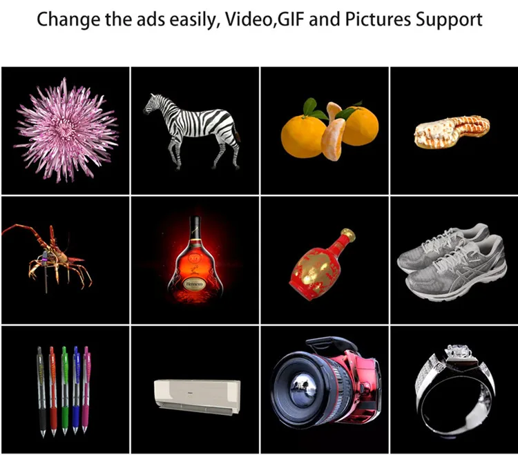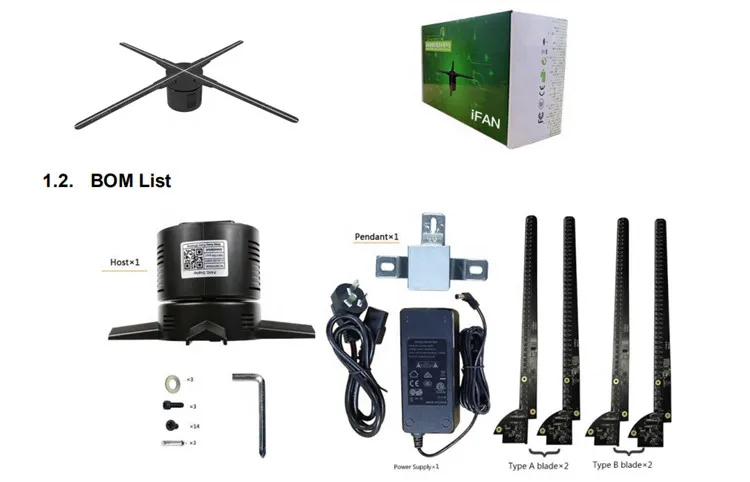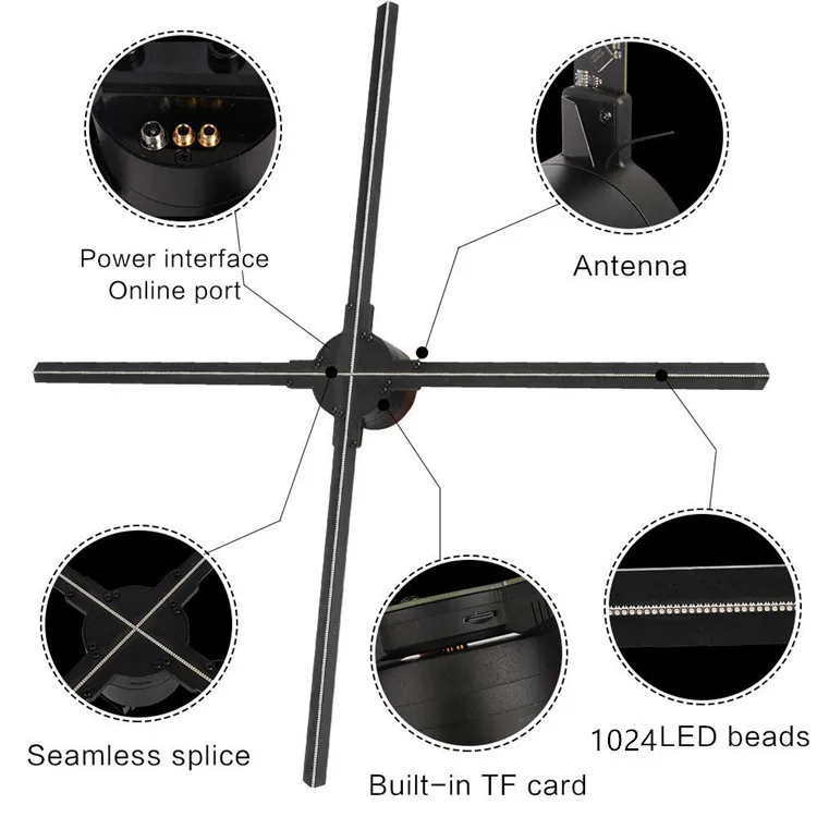Размер изделия: 75 см (диаметр) WIFI и приложение: с WIFI и приложением FOV:176 ° Номер светодиода: 1024 шт. Время подъема светодиода: 30000 часов Разрешение: 1024*1024 пикселей Яркость: 1700 кд/м2 Номинальная мощность: 120 Вт Скорость вращения: 1200 об/мин Поддерживаемые форматы: mp4, avi, rmvb, mkv, gif, jpg, png Память: максимальная поддержка tf-карты 32 Гб Управление: Wi-Fi, пульт дистанционного управления, приложение, облако, поддержка Bluetooth (аудиовыход), поддержка сращивания Воспроизведение содержимого: пользовательское определение Вход: AC100 ~ 240 В пер. тока, 50/60 Гц Выход: 24 В Размер изделия: 72,5*72,5*7 см Вес изделия: 0,78 кг Вес упаковки: 1,8 кг Способ установки: настенный, напольный Материал: ABS + PC + AL Цвет: черный Гарантия: 12 месяцев Посылка включает в себя 1 * 3D Голограмма дисплей 1 * Руководство пользователя 1 * Адаптер питания 1*16 Гб Micro SD 1 * кард-ридер 1 * отвертка 1 * пульт дистанционного управления 4 * винты 1 * кронштейн (застежка) Подходит для различных мест: торговых центров, ресторанов, гостиниц, кафе, баров, свадеб, залов ожидания, мероприятий, выставок и т. д.