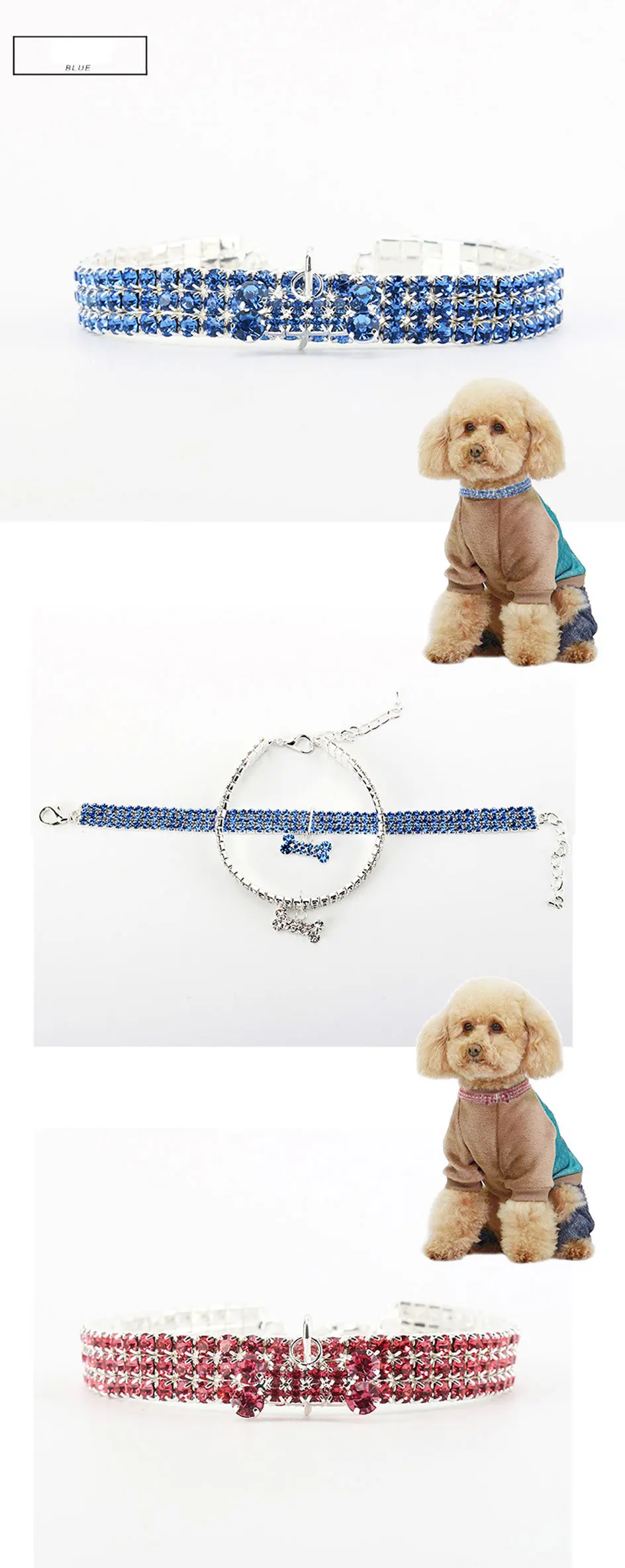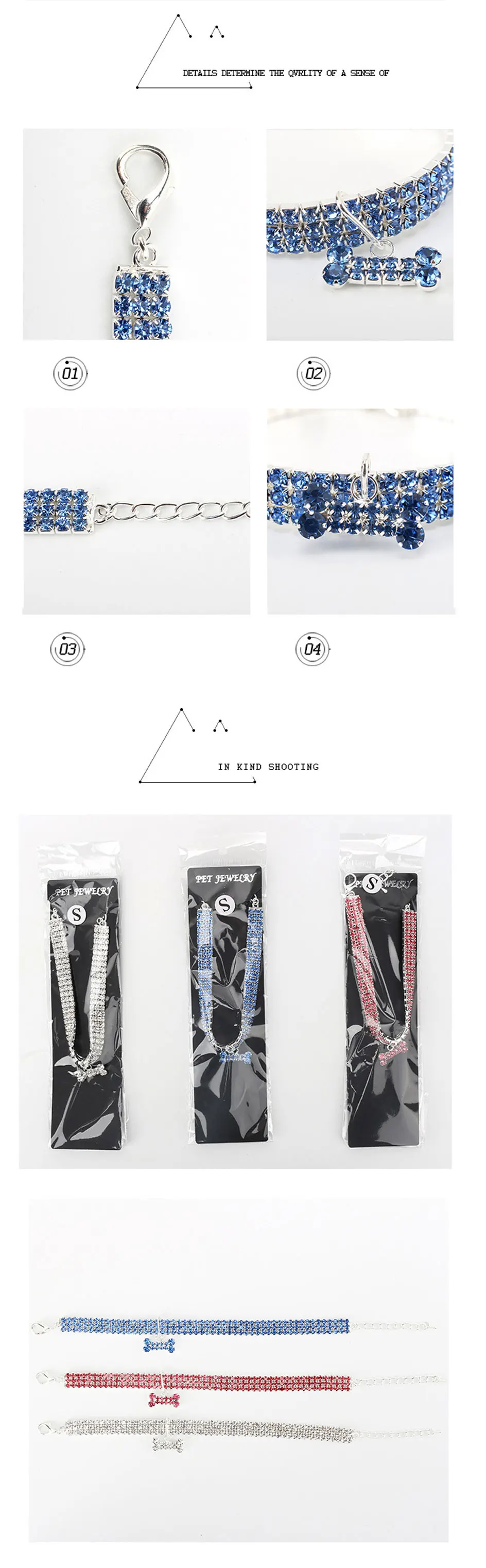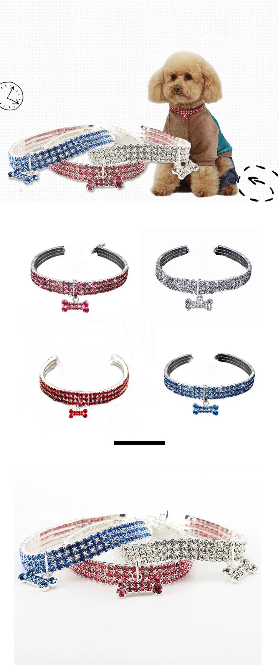 Блестящие стразы с инкрустированным воротником для домашних животных, хорошая эластичность и регулировка.