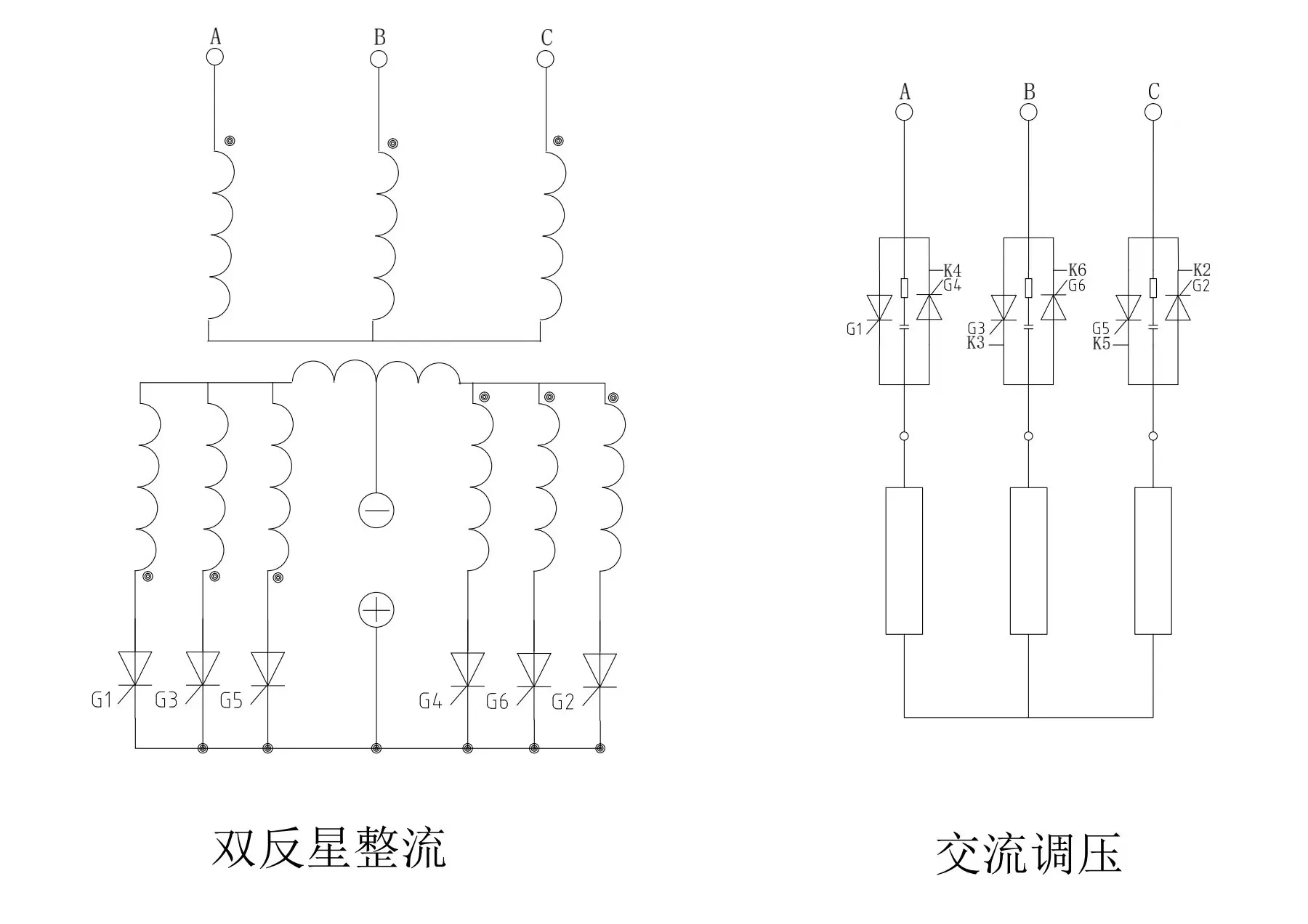 Двойная анти-звезда Контролируемая схема выпрямления с сбалансированной доской reactance.