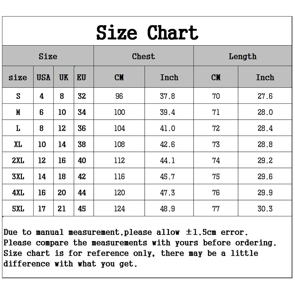[Наш Размер 5XL] Обхват груди: 124 см/48,9 ", Длина: 77 см/30,3" (прибл.)