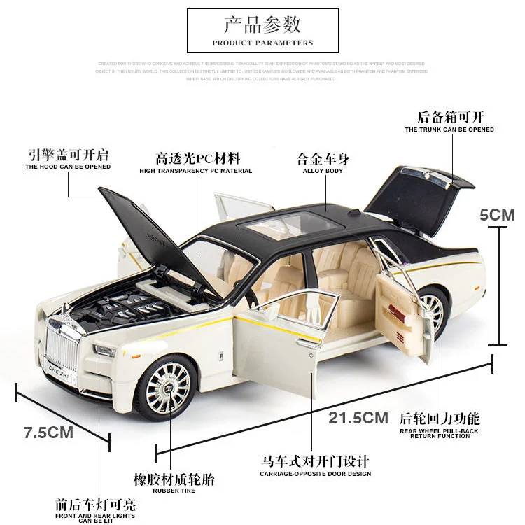 Описание товара: Материал: сплав и пластик Размеры: 21,5 см * 7,5 см * 5 см Цвет: красный, черный, белый Батарея: кнопочный аккумулятор (не входит в комплект) Батарея: кнопочный аккумулятор (не входит в комплект) Рекомендуемый возраст: 3 года и старше Функция/Использование: домашнее украшение, искусство, творческие подарки, коллекция, детские игрушки, Вытяните назад автомобиль, двери могут открываться, звук и светильник. Посылка: 1 x модель автомобиля Фото продукта: