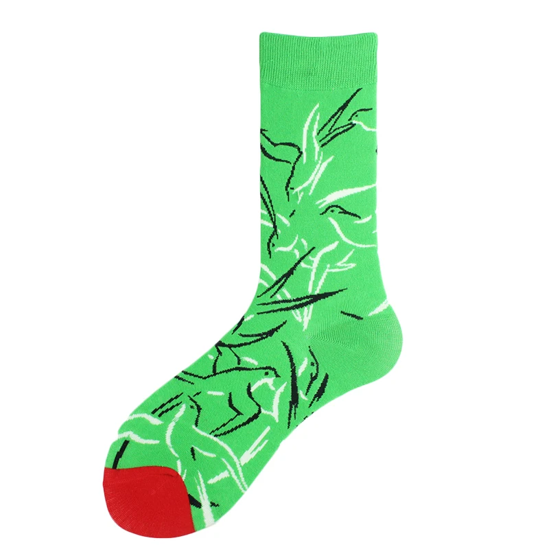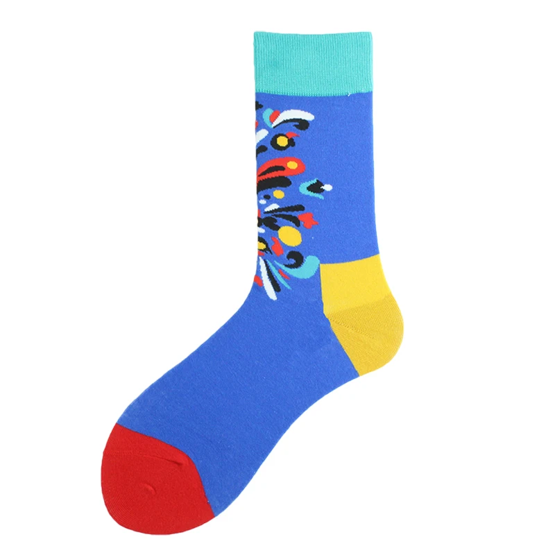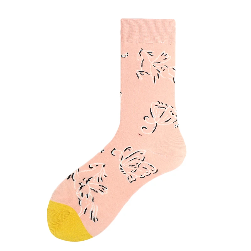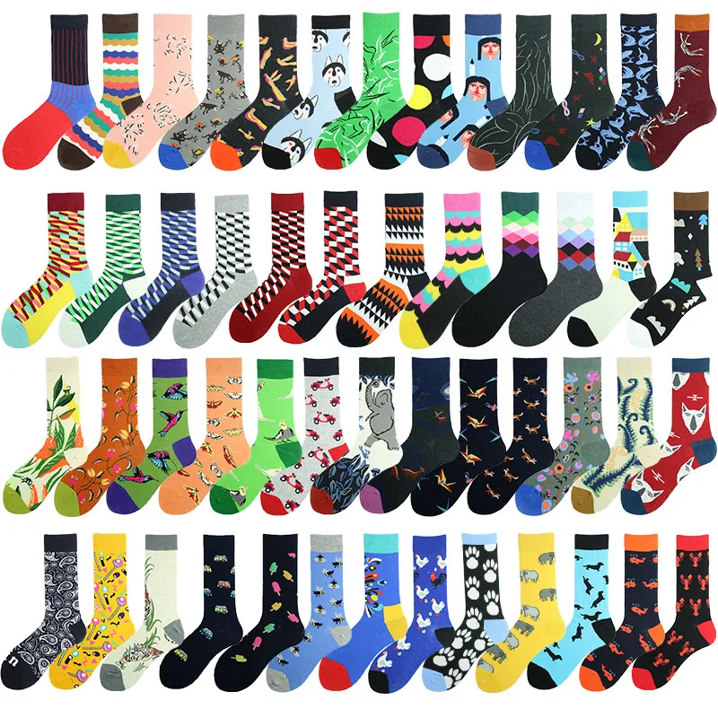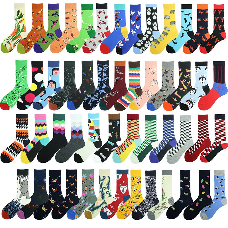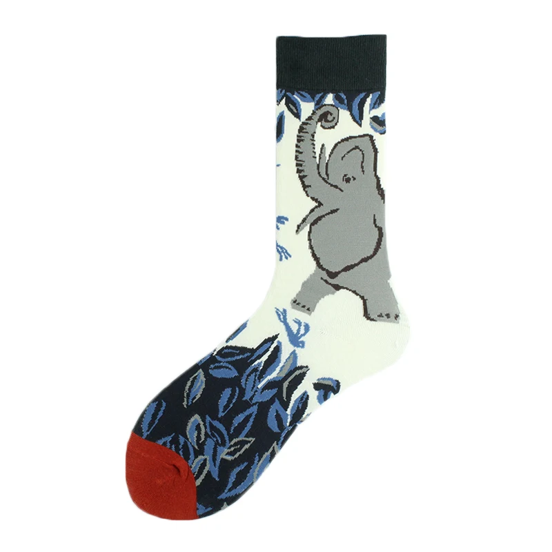 Хлопковые свадебные Смешные мужские носки с цветами, птицами, собаками, слонами, сеткой, индивидуальным абстрактным рисунком счастливого искусства, женские Sokken, унисекс, подарки