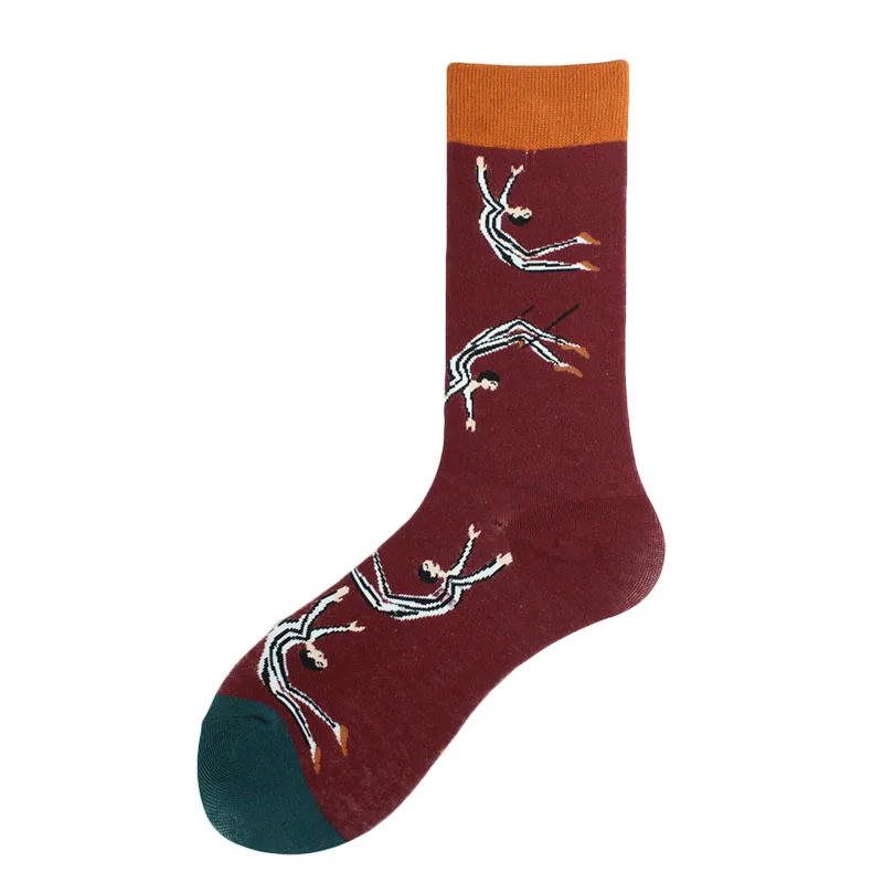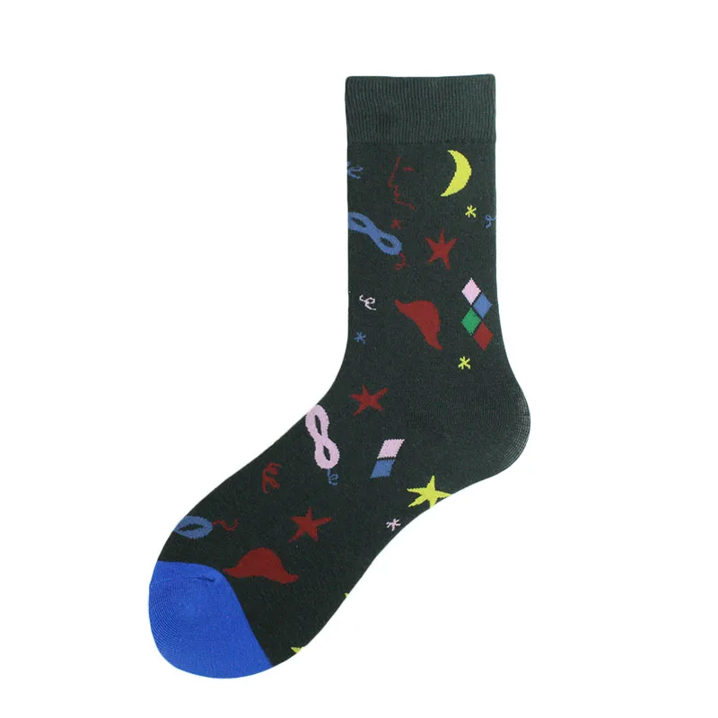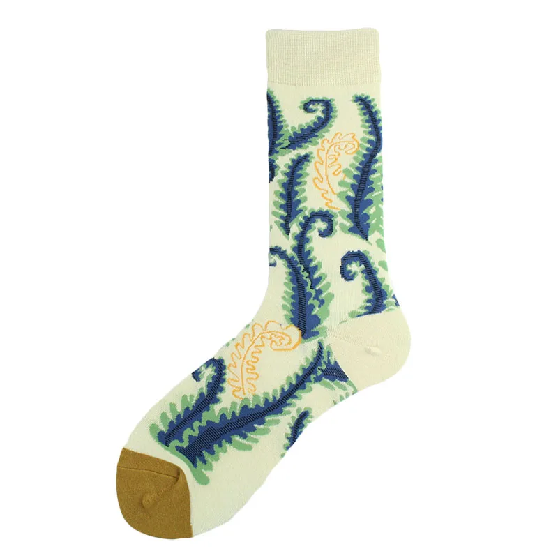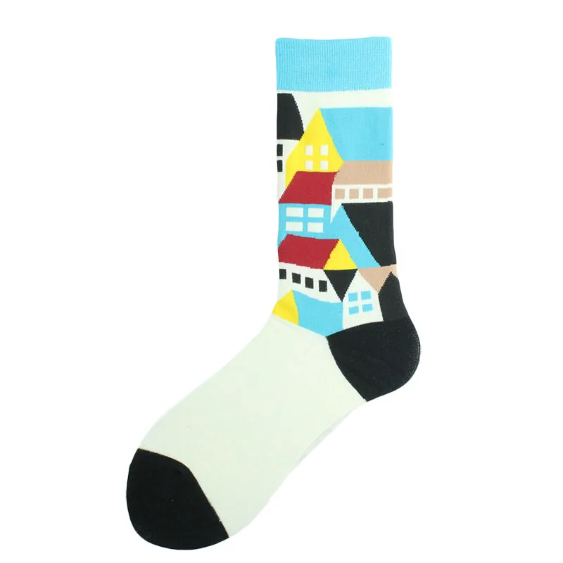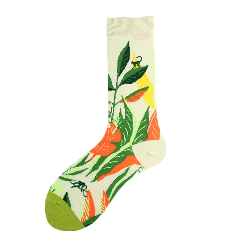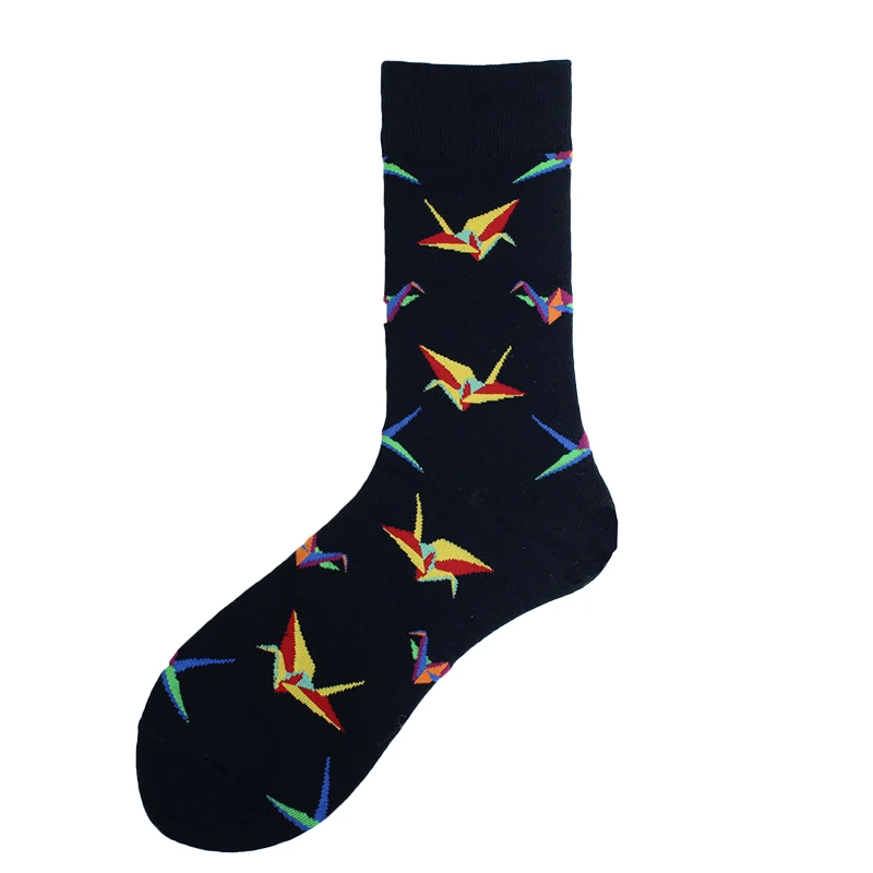 Хлопковые свадебные Смешные мужские носки с цветами, птицами, собаками, слонами, сеткой, индивидуальным абстрактным рисунком счастливого искусства, женские Sokken, унисекс, подарки