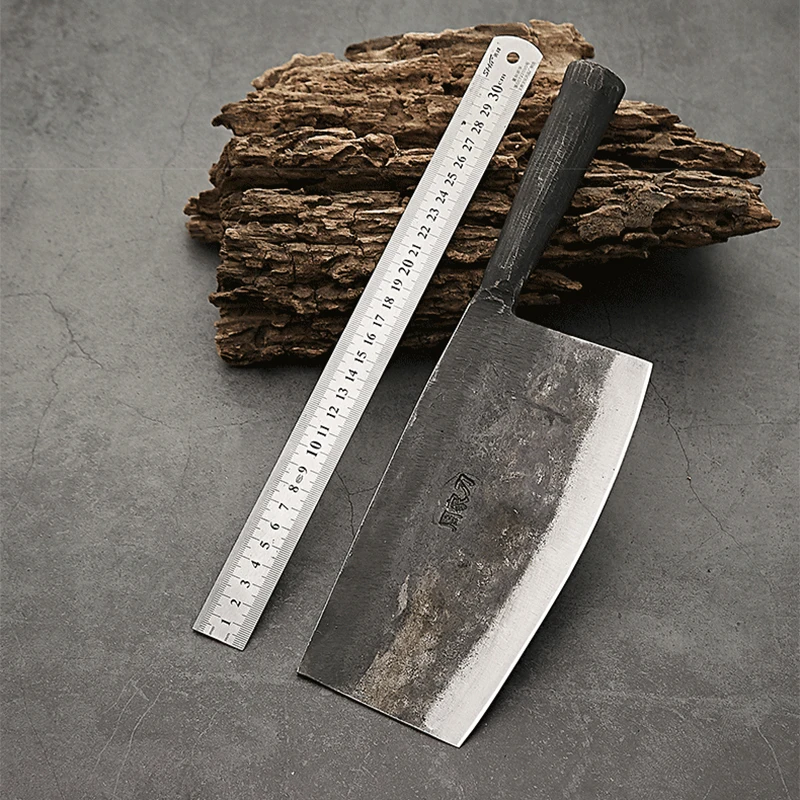 Material: Forged high carbon steel Knife length: 32CM Blade length: 20CM Blade width: 10CM Thickness: 3MM Weight: 0.5KG