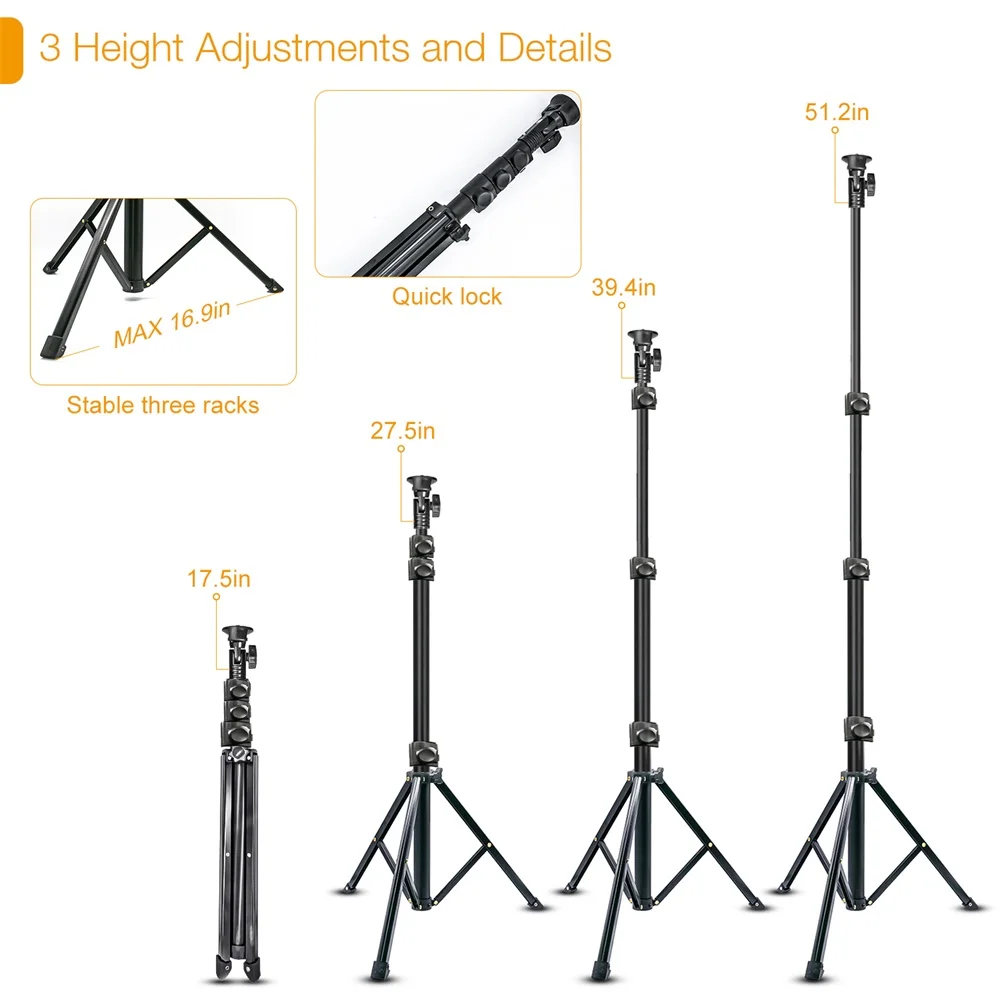 Расширяемый от 17,5 "до 62,9», просто Закрепите его на вы можете выбрать изделие необходимой длины, который вам нужен, который дает возможность использоваться как в сложенном виде Настольный штатив или стоять на полу. Штатив может использоваться в качестве селфи-палки и штатива для телефона.
