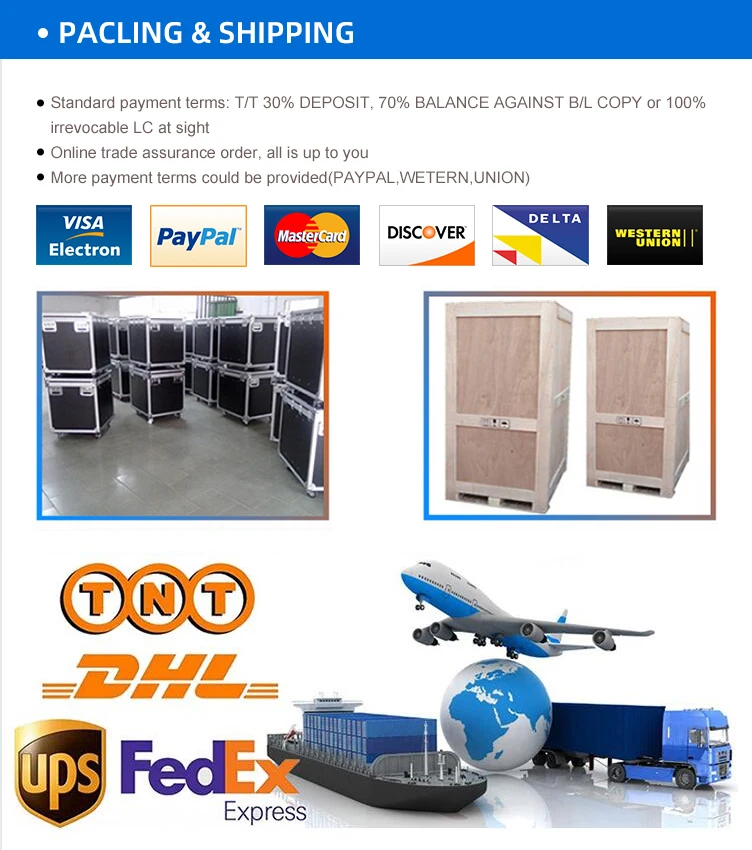 О: это опционально, и мы уважаем выбор клиента. Вы можете выбрать доставку воздушным грузом, DHL(Fedex,UPS и т. Д.) международной экспресс-компанией или морем в соответствии с весом и объемом ваших товаров и временем доставки.