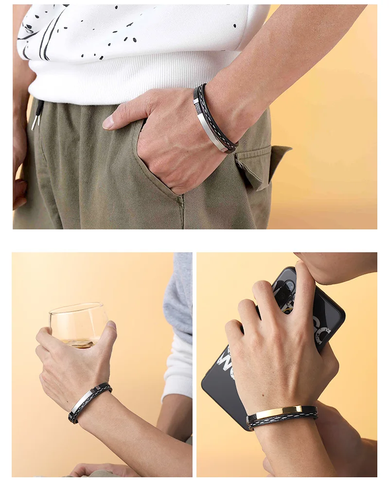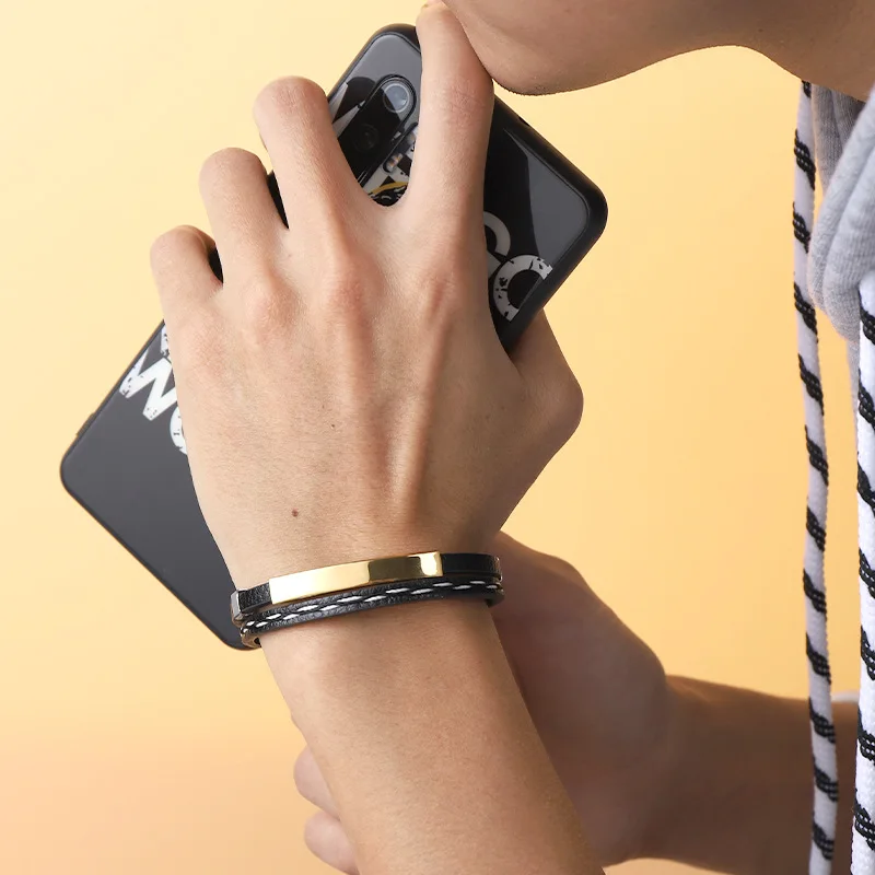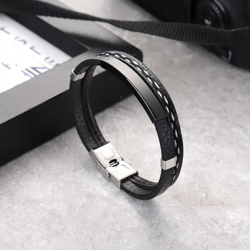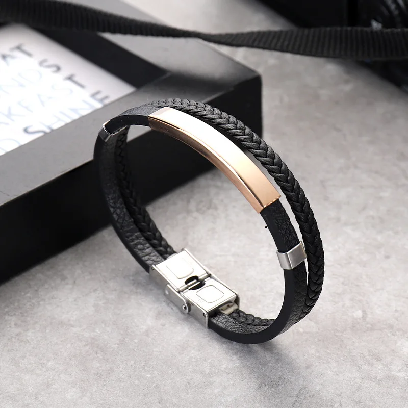 Кожаный плетеный браслет из титановой стали