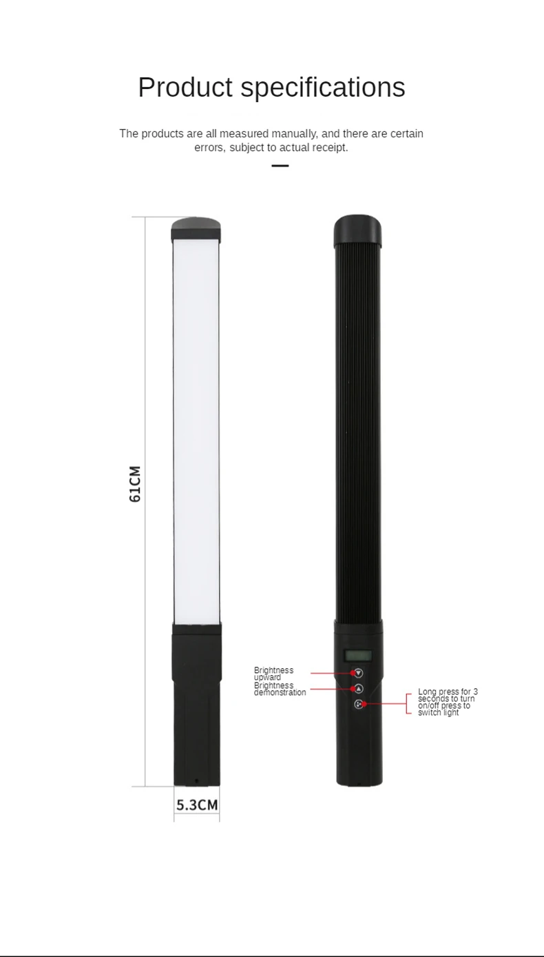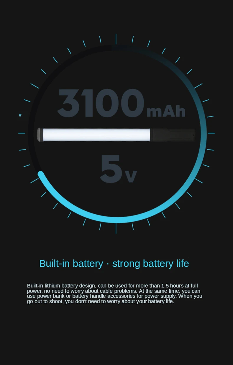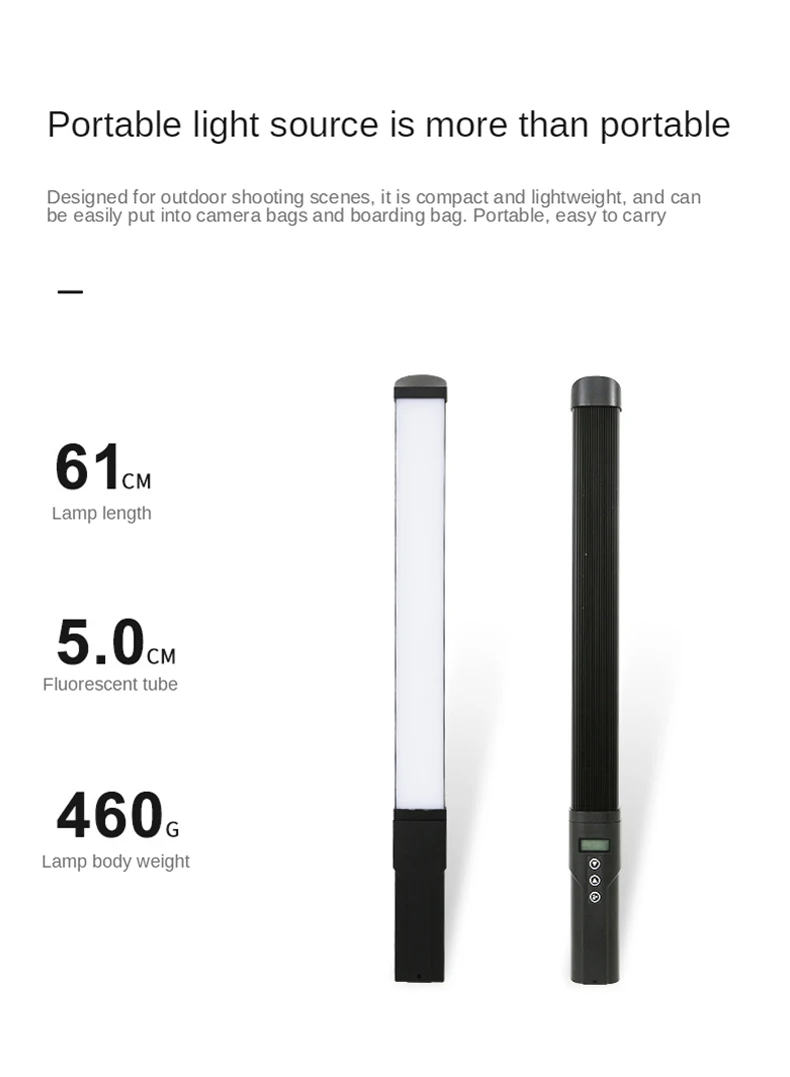 1. Натуральные и яркие: 10 уровней яркости, максимальная 1000 люмен, таким образом, ультратонкое естественное освещение CRI рейтинг более 95, позволяет создать различные специальные эффекты для различных сценариев. 2. Перезаряжаемый и долговечный: Встроенный аккумулятор емкостью 2600 мАч поддерживает длительное время работы от 2 до 32 часов. Usb-интерфейс зарядки позволяет удобно заряжать устройства с usb-портом, такие как внешний аккумулятор, компьютер и т. Д. 3. Портативный и удобный: Свет поставляется в размере 61*5,3 см и 460 г легкого веса, идеально подходит для ручной работы. Дополнительно он имеет петлю для подвешивания, сумку для хранения для удобной переноски, 1/4 отверстие для гайки для установки штатива (штатив в комплект не входит). 4. Дистанционное управление и простота: Простая в использовании Кнопка нажатия обеспечивает простую работу, световой индикатор обеспечивает легкий захват состояния батареи; С беспроводным пультом дистанционного управления, он может управляться дистанционно, даже без эксплуатации на светочувствительной палочке. 5. Широко используется: Этот надежный свет может использоваться в качестве лампы для макияжа, фотографического освещения, аварийного освещения, шкафа/кухни/подвала/кемпинга/ночного бега/пещерного освещения. 6. Эта ручка RGBLight использует прочный материал, принимает легкий контроль, предлагает естественный белый/холодный белый/теплый белый/вспышка света и больше света с регулировкой яркости, который отвечает вашим различным требованиям и позволяет легко переключать свет.