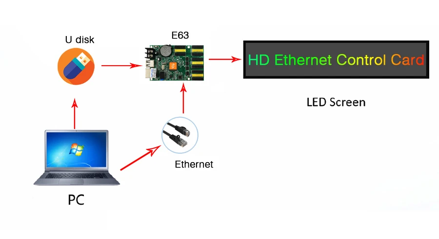 ☆.E63 Это Серия E-series control card, E, сетевой порт, через сетевой кабель для обновления Программы. Кроме того, есть интерфейс USB, но также через u-диск для обновления программы. Недорогой, экономичный, простой интерфейс, простой в эксплуатации, лучшая и богатая поддержка эффекта отображения для различных монохромных дисплеев. |